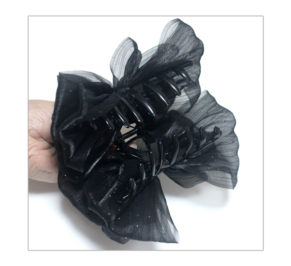 【定形外郵便OK290円】ヘアクリップ/多毛さん必見 大きめリボン ラメ 大人スタイル シアー素材 韓国 バンスクリップk95☆白