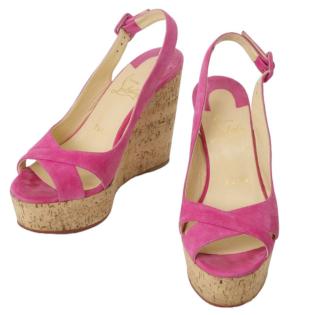 ■ クリスチャンルブタン REINE DE LIEGE ウエッジ ヒール サンダル 37(24cm位) ピンク 3190262 レディース コルク スエード 厚底 Christian Louboutin 【中古】【ランクAB】 |