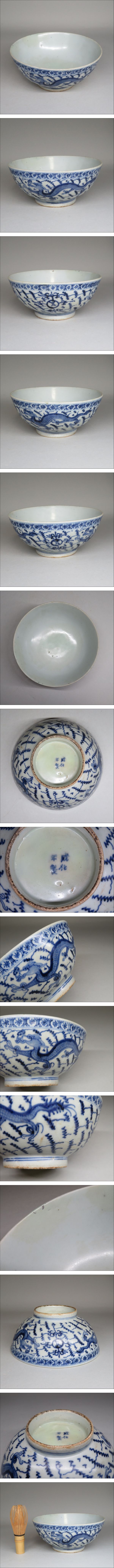 | 明時代 民窯 青花龍文碗 高台内に「成化年製」 | ||