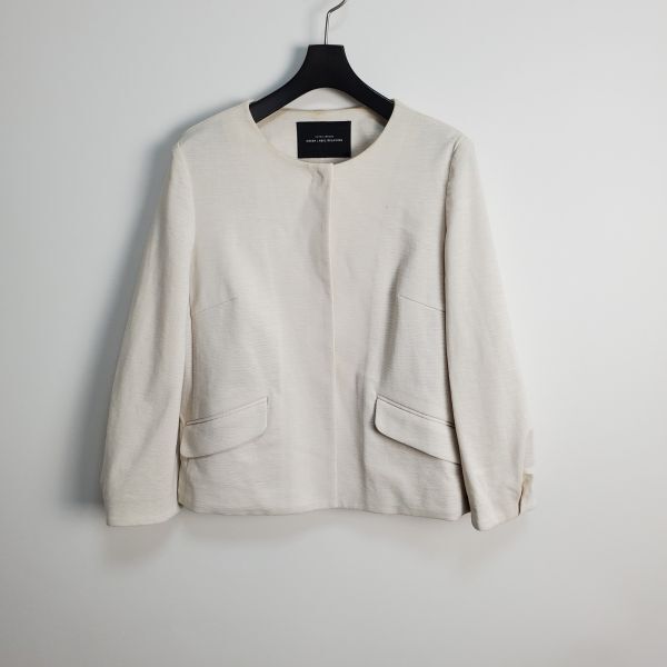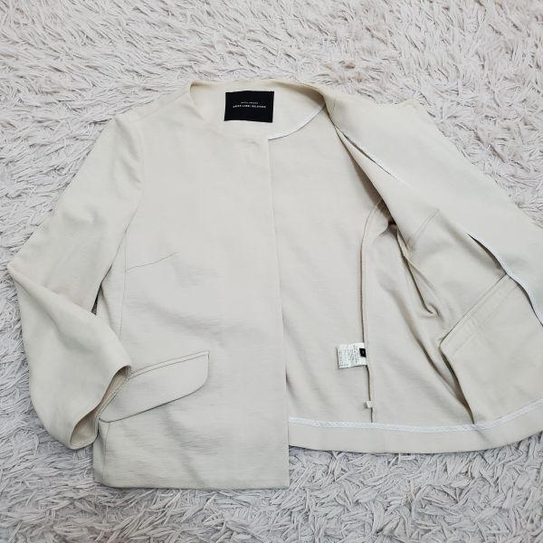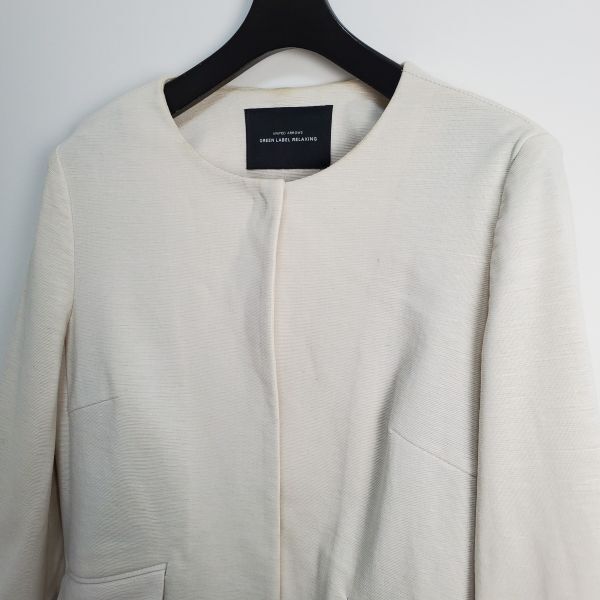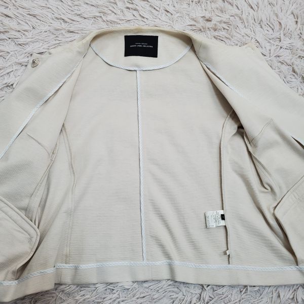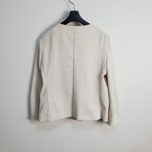 ライトベージュの爽やかな色味で春夏の羽織りに最適で、通気性が良く、七分袖で軽やかな着心地が魅力です。