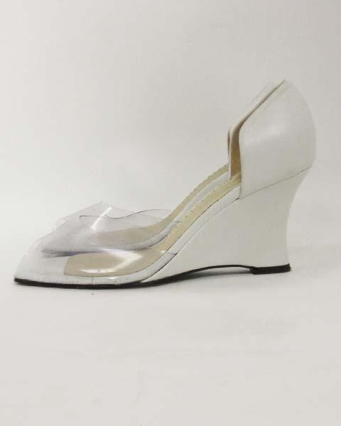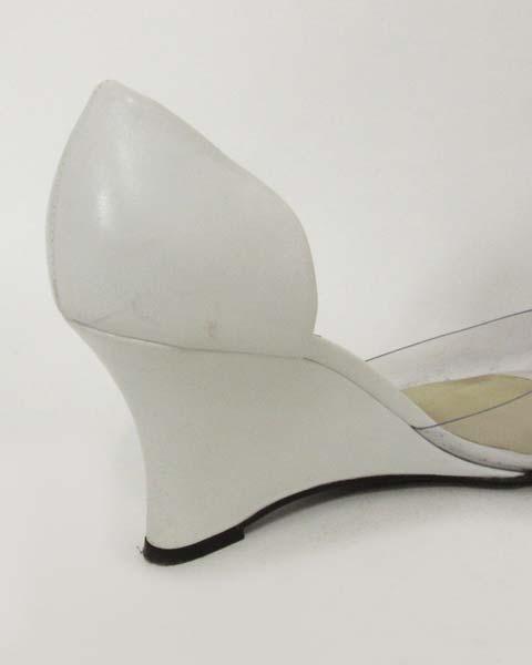 | フォクシー(FOXEY)白×クリアーウェッジパンプス 37 1/2 | ||||