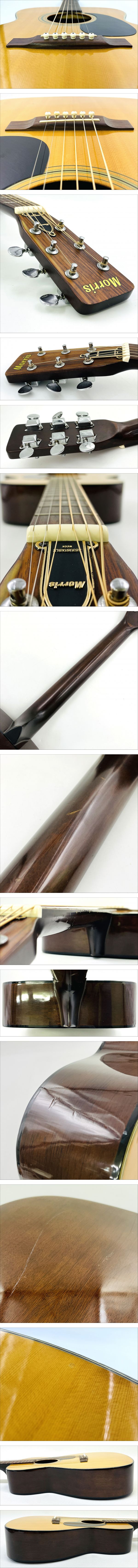 | ■状態評価■※弊店基準を元にしております。 中古整備品 ■商品詳細■ 70年代モーリス黄金期の代表的モデルで、 トリプルオーサイズの抱えやすいボディと明るく伸びのある鳴りが魅力の一本。 上位モデル譲りの構造を持ち、フォークから弾き語りまで幅広く対応します。 ・トップ:スプルース ・サイド/バック:マホガニー ・ネック:マホガニー ・指板:ローズウッド ・ブリッジ:ローズウッド ■音質特徴■ Morrisらしい 中域の厚みと木の温もりを感じるトーン が特徴。 スプルース×マホガニー構成により、ウォームでバランスの取れたサウンドを実現。 ピッキングのニュアンスに敏感で、ストロークでは軽快な立ち上がり、 フィンガー奏法では柔らかく深い響きを聴かせます。 ボディの箱鳴り感も豊かで、経年により木材が乾き、 ビンテージ特有の“枯れた鳴り”が楽しめます。 ■状態■ 経年による小傷や打痕、塗装の擦れが全体的に見られますが、 演奏上支障となるダメージはなく、しっかりと鳴るコンディションを保っています。 ※画像にて状態をご確認下さいましたら幸いです。 ※専門家に検品して頂きメンテナンス調整済みになります。 ※清掃済み、新品弦Aria AGS-200XLに交換済みです。 ■メンテナンス内容■ フレット磨き/FERNANDES スクラッチメンダー946 指板磨き&保湿/Dunlop (Jim Dunlop) FRETBOARD 65レモンオイル ボディ・ペグ清掃/ギタークリーナー・クロス ・ネック:わずかに順反り気味 ・フレット残り:全体的に7〜8割残 ■サイズ■ 全長:99cm ボディ最大幅:37cm 奥行き:10cm ナット幅:43mm 弦長:620mm 重量:1725g 弦高:6弦5mm 1弦4mm ※ご不明点は入札前に必ずご質問下さい。 (本文記載事項には返答いたしかねる場合がございます) ※画像1枚目に写っているものが全てになります。 【梱包発送について】 発送元は『札幌市 西区』 からとなります。 ヤマト運輸にて配送させて頂きます。 着払いでの発送、および定型外等その他発送方法には 業務上の都合によりご対応出来ません。 予めご了承下さいますよう、何卒宜しくお願い致します。 ※配送料金表は最下部に記載がございますので、大変お手数ではございますが一番下までスクロールしてご確認下さいませ。 ご入金確認後当日~2日以内で発送させて頂きます。 (基本的に24時間以内の発送になりますが、土日祝日は集荷予約が必要な為、発送出来ない場合がございます。予めご了承下さいませ) ■お支払方法について■ お支払いは『!かんたん決済』のみとさせて頂いております。 【お支払金額について】 落札価格+送料 上記の金額をご確認の上お支払いをお願い致します。 ※落札日から2日以内にお振込のお手続きをお願い致します。 ※落札後24時間以内に取引ナビにてご連絡が無い場合と 5日以内にご決済確認できない場合は、落札者都合での キャンセルとなりますので、ご理解の上ご入札をご検討下さいませ。 上記記載を予めご確認の上、ご入札・ご落札をお願い致します。 ■ご注意事項■ 【ご入札前に必ずご確認下さいませ】 いたずら入札、落札後のご連絡が取れなく放置の方が多くおられますので、注意喚起になります。 !かんたん決済のお支払い期限は「落札日から5日以内」です。 ご落札頂いてから24時間以内にご連絡がない場合と!かんたん決済のお支払い期限以内にご決済確認できない場合は「落札者都合として削除」させて頂きます。 上記の事例から「落札者都合として削除」した際は「非常に悪い落札者です」の評価を入れさせて頂く事となりますので、 報復評価等はなさらない様、予めご了承下さいませ。 上記内容で報復評価等があった場合に関しましては、 のトラブル申請制度に通報させて頂きます。 また、マイナス評価の多い方や新規IDの方、いたずら入札、取引継続困難と判断した際は、上記期間を経ずに入札の取り消し、または「落札者都合として削除」させて頂く場合がございます。 【商品の状態に関しまして】 弊店取扱い商品は、中古品が多く一度人の手に渡ったお品物でございます。 使用感、汚れ、変色、カビ、擦れ、剥がれ、金具類の錆、破損等がある場合がございます。 ※必ず状態の記載はいたしますが、商品はUSED品・もしくは保管品が主となりますので、神経質な方はご遠慮下さいますようお願い致します。 以上あくまでも中古品であることをご理解頂きました上でご入札下さいますようお願い申し上げます。 【色合いについて】 お色・状態に関しましては、モニター環境や太陽光・室内ライトなどの環境により見え方が違う事もございますのでご理解下さいませ。 パソコンやスマートホンなどモニター環境によりまして商品のお色、素材感は正確にお伝えするのは困難でございます。 ※また、匂い等の感じ方も大きく個人差が御座います、ご落札後の色味、匂い、素材感等の相違による返品・返金は 対象になりませんので、ご入札前に必ずご質問下さいませ。 ※サイズ・色・付属品・状態・お取引条件(発送方法・送料)等を十
