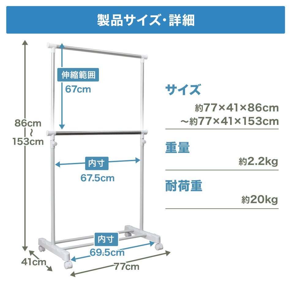 キャスター付きでたくさん掛けても移動がラクラク♪ お掃除や模様替えなどの移動に便利です。 場所を選ばないシンプルなデザイン♪ 高さ調節も自由自在でロングコートを掛けたり、下部には収納ボックスなどを置くことができます。 【商品仕様】 サイズ(約)幅77×奥行41×高さ86〜153cm 重量(約)2.2kg 材質:スチール、ABS樹脂 他 耐荷重(約)20kg ・お客様組み立てとなります。 ・水平で平らな場所でご使用ください。 ・収納物はバランスよく、片寄りがないように掛けてください。 ・ぶらさがったり、上に乗ったり、ゆすったり、無理な力をかけたりしないでください。 ・耐荷重の範囲でご使用できますが、接地面に傷やへこみがつく場合がありますのでご注意ください。 ・当商品設置に伴う損害(落下に起因する損害、壁の汚れ、壁の損傷等)に対する責任は負いかねます。 |