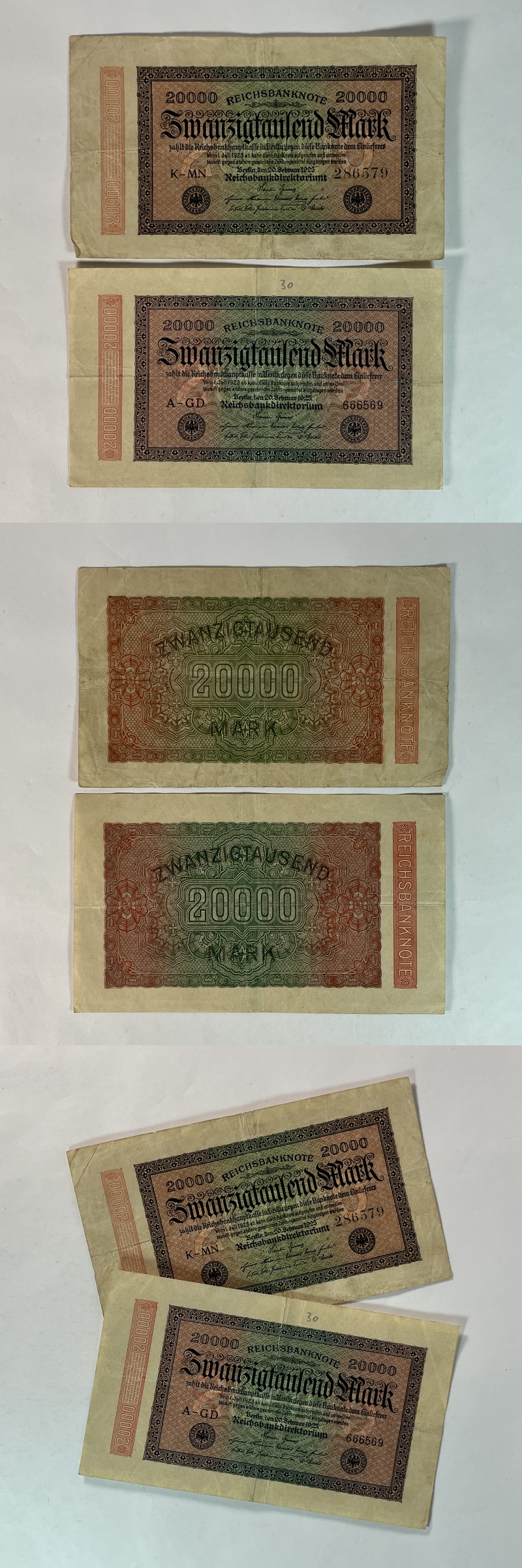 ▲ 【1円スタート】旧紙幣 ドイツ 20000マルク 2枚 1923年▲hi1295