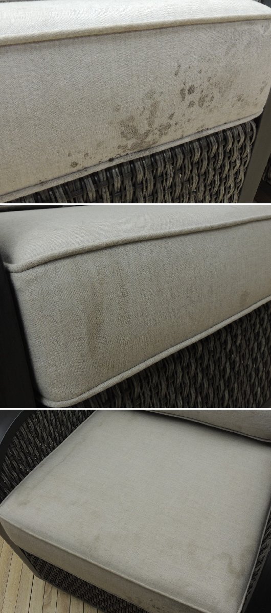 ≪商品説明≫ ●商品は画像に写っているもので全てとなります。 ●当方このような商品に対する知識が乏しいため、十分画像をご参照した上でご入札下さい。 ●人から譲り受けたものですので商品の詳細については写真から判断ください。 ●1脚のサイズ・・・高さ(約)910mm×幅(約)743mm×奥行(約)780mm 座面高さ(約)500mm ※素人採寸ですので、若干の誤差はご容赦下さい。 ●あくまで中古品ですのでキズや汚れなどがございます。ご理解の上、ご入札下さい。 ●商品状態の良否の考え方は個人差がありますので、神経質な方は入札をお控え下さい。 ●ソファ布地にシミがあります。写真6、7枚目でご確認ください。 ●木枠にキズがあります。写真8枚目でご確認ください。 ●色目がご覧になるパソコンによっても違う場合もございますのでご了承願います。 ●他でも出品しておりますので、早期終了する場合がございます。予めご了承下さい。 ●ノークレーム、ノーリターンにてお願い致します。 |