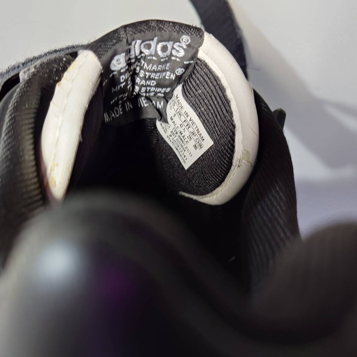 たしか2015年頃で新品を購入しました。「3本線・ストラップのadidasロゴ・トレフォイル」を染料でブラックアウトし、シューレースを黒に替えるカスタマイズしています(オリジナルの白シューレースはありません)。