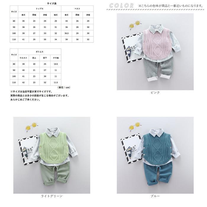 | 商品説明 | ・・秋冬のカジュアルコーデが完成!キッズセットアップが新発売♪ ・【秋冬向け】 ・ニットベスト・長袖シャツ・長ズボンが付いたお買い得なセットアップアイテム。秋冬のカジュアルコーデに最適☆ ・【サイドボタン付きベスト】 ・小さなお子さまでもお着替えがしやすいサイドボタン付き。ホワイトカラーでちょっとしたアクセントにも◎ ・【ナチュラル感ある長袖シャツ】 ・シャツはガーゼのようなコットン生地を採用。ナチュラル感と北欧風のデザインが魅力。 ・手を挙げているクマちゃんが可愛くお子さまもほっこり癒される♪ ・【ポケット付きズボン】 ・深めのポケットを2つズボンに配置。ハンカチやミニポケットティッシュなどが入れられ通園・通学用にもおススメ♪ ・【単品使いもOK】 ・どのアイテムもおしゃれでキマるデザイン♪それぞれ単品で使ってもOK! |