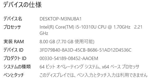 | 商品説明 | ■商品概要 ・2020年に発売された頑丈・軽量・ロングバッテリーな12.1型モバイルノートパソコンで、第10世代のクアッドコアIntel Core i5のCPU(10310U)・8GBメモリにNvme 256GBを搭載した、スタンダードかつ、扱いやすいモデルです。 ・正規リカバリによるセットアップ(リカバリ領域あり)を行い、OS は Windows 10 Proffesional で発送します。 ・本機種はWindows 11への公式アップデート対象機種となっております。 ■本機種の主な特徴について SV8の順当進化の機種となっており、基本性能の向上が図られています。 【Nvme SSD GEN4対応】 Nvme SSD搭載可能。 こちら、GEN4に対応しているためより高速なNvmeSSDの搭載が可能です。 PCの起動は非常に早く、待つというストレスもなく非常に快適です。 【顔認証について】 顔認証の設定はややわかりにくいものの、設定をしてから使用するとこちらも1秒かからないくらいの速さでログインが完了します。頻繁に離籍したり手がふさがっていることが多い方は、よりメリットを感じられるかと思います。 【USBポートについて】 USBポートが本体左側にも付いたため、PCに接続する機器の自由度が増したことも大きなメリットだと思います。 もちろん、Type Cポートも搭載しているため、I PhoneやAndroidといった各種スマホの充電やデータのやり取りなど、スキがなく使いやすいモデルです。 ■主なスペック メーカー名 : Panasonic 製品名(型番) : CF-SV9RDLVS CPU : Core i5-10310U 1.70-4.40 GHz (4コア/8スレッド) メモリ : 8GB ストレージ(SSD) :Nvme 256GB (リカバリー領域有り) 光学ドライブ :なし 画面サイズ : WUXGA TFTカラー液晶 12.1型ワイド 解像度:1920×1200ドット (FULL HD) 有線LAN/無線LAN : 1000BASE-T/100BASE-TX/10BASE-T / インテルR Wi-Fi 6 AX201 IEEE802.11a ( W52/W53/W56)/b/g/n/ac/ax準拠( WPA3、WPA2-AES/TKIP対応、Wi-Fi準拠) キーボード : 日本語配列 インターフェイス:USB3.1 Type-Cポート×1、USB3.0ポート×3、LANコネクター(RJ-45)、外部ディスプレイコネクター(アナログRGB ミニD-sub 15ピン)、HDMI出力端子(4K60p出力対応) OSシステム : Windows 10 Pro 64bit 詳細な仕様について ( パナソニックの説明ページへ飛びます) ■付属品 ACアダプター ■導入済みソフト -デフォルトソフトウェア- ・Panasonic 各種ユーティリティ(リカバリディスク作成ソフト・各種設定ソフト) ・Microsoft Office on the web (Word,Excell,Powerpointの無料 Web版) -追加導入ソフトウェア ・LibreOffice (オフラインで使用可能なOffice ソフトウェアセット) ・Google Chrome(世界シェア約 50 %のブラウザソフト) 個々によって使用用途が異なるため、汎用的かつ必要と思われるソフトを優先して導入させていただきました。 ■商品の状態について 総合評価:使用時間1160時間と非常に浅い商品です。 使用感が少なく、外装は非常に綺麗で動作良好な良質・超美品です。 ※商品によっては,入荷時に企業側の要望によりセキュリティの関係上SSDを廃棄しているものもあるため、SSDの使用時間=使用時間とならない場合がございます。 新品SSDをご希望の方は、オプションよりご要望ください。 トップカバー:質感もよく、非常にキレイです。 ボトムカバー:質感もよく、非常にキレイです。 キーボード:新品同様に非常にキレイです。 パームレスト:質感もよく、非常にキレイです。 液晶:目立った傷もなく、発色はキレイです。 側面:質感もよく、非常にキレイです。 その他:WEBカメラ表示確認、ネット接続確認済みです。 ■■落札後のサービスについて(決済時に併せてご依頼下さい)■■ 【OSの変更について】 お届けする際に搭載されているOSは『Windows 10』 ですが、ご希望の方には『Windows 11』にOSを変更の上、発送をさせていただきます。 【領収書について】 発行可能です。 ご希望の場合には、取引メッセージにて『宛名』、ご指定があれば『品名』等、決済後にご連絡ください。 ※決済頂いた後速やかに梱包作業を行うため、OS変更、領収書ご希望の方は、決済時のあと、直ぐにご連絡いただければ幸いです。 【発送について】 ■入金頂いてから、早ければ当日、遅くとも翌日まで発送させていただきます。 ■出張等で対応できない場合は、落札いただいてから取引メッセージにてご連絡させていただきます。 ■同梱可能です。 ご希望の場合はおまとめ取引よりご依頼ください。 ――――――――――――― 【サポートについて】 PCの操作や設定など不慣れな方は、落札後に遠慮なく取引メッセージよりお問い合わせください。 自分にできる範囲となりますが、サポートをさせていただきます。 ――――――――――――― 【その他お伝えしたいこと】 ・運用方針について。 今までお取引を頂いた落札者様とのご縁があり、おかげさまで評価1000を超えることができました。 心より感謝申し上げますとともに、改めて運用方針のご案内をさせていただきます。 『落札者様に損をさせずに Win & Win の関係性を築くこと』 を基本として、発送、不具合の対応含め、誠実、迅速な対応をさせていただいております。 注意事項にも記載させてい