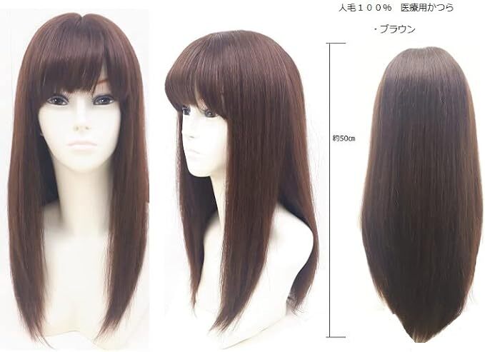 | コメント | 【人毛100%かつら 全頭フルウィッグ NS-050 ブラウン ロングストレートヘアー 】 通常店頭価格 79800円 生え際自然なおくれ毛入り 良質の人毛100%で作られておりますので、見た目も手触りもすごく自然です。 雑貨店や通販店の商品とは違い、かつら専門店の製品ですので安心してご使用いただけます。 他社の商品と比べてみてください!品質・価格に自信あり! こちらの商品は医療用として抗がん剤治療中による脱毛・円形脱毛症・病気による脱毛・薄毛など、もちろんファッション用としても数多くご利用いただいております。 人毛100%のかつらですので、ドライヤー・アイロン・カーラーOKです。また、パーマやヘアカラーも可能です。 【両面テープが貼れるタイプ】 こちらのタイプは裏面に前・横・後ろに医療用の両面テープが貼れるようウレタン素材のテープ台が付いております。もし邪魔な場合はミシンで縫われておりますので、糸を切って解いていただければ簡単に取り外すことができます。 【毛質】 人毛100%でさらさらロングのストレートヘアー 【分け目】 1枚目の画像ではヘアースタイルがセンター分けになっておりますが、人工皮膚を横幅を10㎝と大きくしておりますので分け目を左右に多少変えてご使用いただくことが出来ます。(2枚目の画像をご確認ください) 分け目部分は1本1本手植えで丁寧に植えており、人の頭皮に見える当店こだわりの人工皮膚を使用しております。 【毛の長さ】 前髪の長さ:約10cm (ベースから) トップの長さ:約35cm (ベースから) 後ろの長さ:約35cm (ベースから) 頭頂部から後ろの一番長いところまでの長さ:約50cm(1枚目の画像を確認してください) 長さ・毛の量を調整したい時にはご自分でカットされるか、美容室などにご相談ください。 こちらの商品は人工皮膚部分は手植えで作製されています。 分け目部分以外は機械植えになります。 【付属品】 ・ウイッグネット(黒色)1個 ・パッチン金具2個付き(必要な場合はご自身で針と糸を使って簡単に縫い付けることが出来ます。) ・お試し両面テープ5枚(ハサミで小さく切ってご使用ください) 【キレイにセットされたカツラを到着後すぐにご使用になりたい場合】 商品がお手元に届いた際、袋に入っておりますので画像のように綺麗にセットされておりません。到着後すぐにご使用されたい方、またはセットが苦手な方は プラス4500円で発送前にシャンプー・トリートメント・ブローをして崩れにくい状態で箱に入れて発送させていただきます。(注意:専用の箱ではございません) その際、前髪の長さをご指定いただければ前髪を指定の長さにカットいたします。 ご購入後もセットが苦手な方・シャンプーしたい時などに送っていただければ4500円にてシャンプー・トリートメント・ブローのアフターケアを行っておりますので、是非ご利用くださいませ。 秘密厳守。発送の際は衣類として送らせて頂きます。 お気軽にご質問くださいませ。 フリーダイアル 0120-368-236 |
