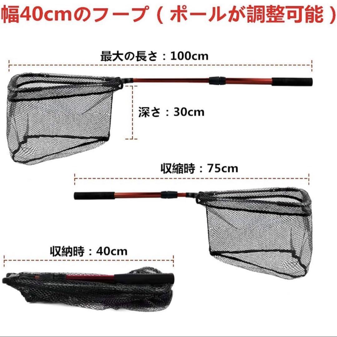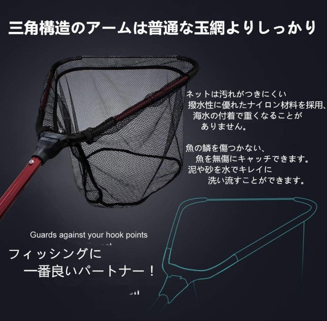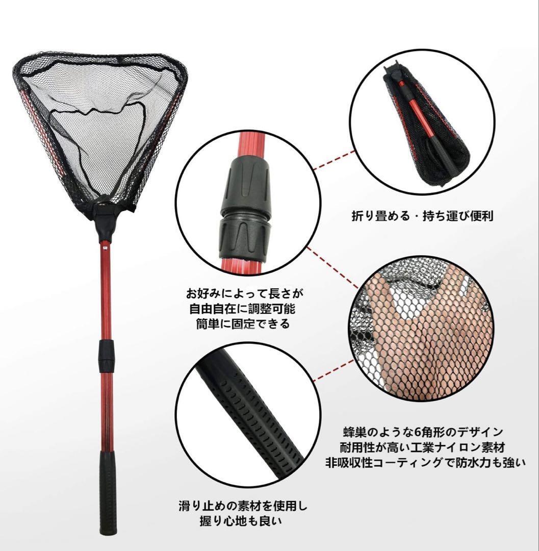 【商品仕樣】素材:アルミニウム合金 、展開後の全長:70cm/98cm/115cm、収納後:40cm、網の深さ:33cm/35cm/35cm。枠の形:三角形、枠のサイズ:33*37cm/40*43cm/40*43cm、重量:355g/420g/480g、最大耐荷重:5kg、ワンタッチで展開! 折りたたみ式で、携帯楽々! ランディングネットとも呼ばれ、釣りに行くなら必携のアイテム!br【ラバーコーティング】ラバー素材の網は、安全性、耐久性、利便性、洗浄性などの利点があり、海水の付着で重くなることがありません、魚やエビなどを取り込んだ際に魚が傷つかない。 ラバー素材の網を購入することは、釣りにおいて最高の選択肢です。br【折り畳み式玉網・持ち運び便利】ワンタッチで網の開閉が可能で使い方が簡単で初心者の方にもおすすめです。折りたたみ式のネットはコンパクトに収納でき、持ち運びにも便利です。重量も軽いです。br【超軽量で頑丈なアルミニウム合金ハンドル】高品質なアルミニウム製の玉網は、非常に耐久性が高く、長期間使用しても簡単に壊れることがありません。海水、淡水、多数の場合で使えます。最大耐荷重は5kg。商品の重量はわずか0.355kgで、携帯に便利です。釣りの際に快適で自由な動きを実現します。br【多用途】川場の水遊びから海釣りまで、淡水・海水両用ランディングネット!堤防釣り、荒磯・波止め・沖堤など移動が多い釣りや探り釣りに最適!