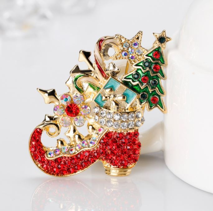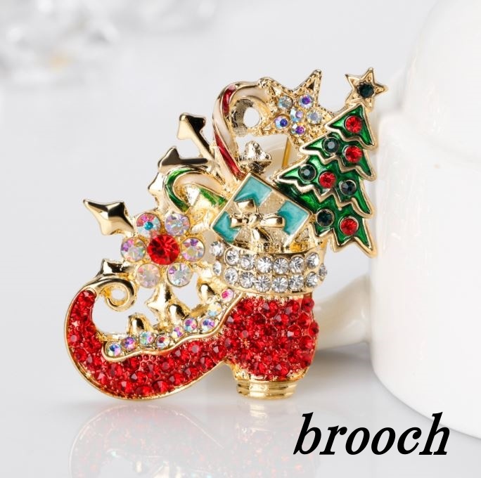 | ご覧いただきましてありがとうございます(*´ω`) こちらはラインストーンがキラキラ輝く赤い靴のブローチです。 ツリーやプレゼントがたくさん入っています。 大きめのブローチで存在感があります。 服、ストールだけでなく、帽子やバッグに付けてもいいですね。 【サイズ】4.2×5.2cm ピンの長さ 2.5cm 【素材】合金 【重さ】約17g ※お使いのモニターの設定によって実際の色と異なる場合があります。