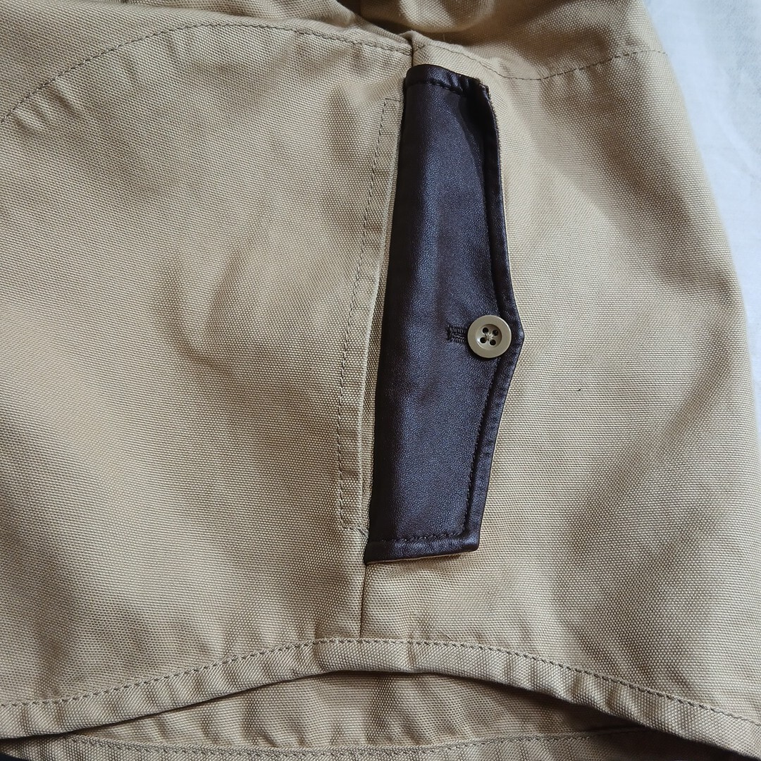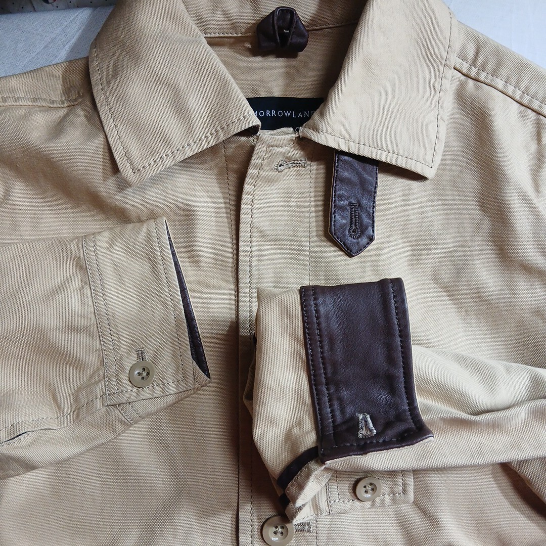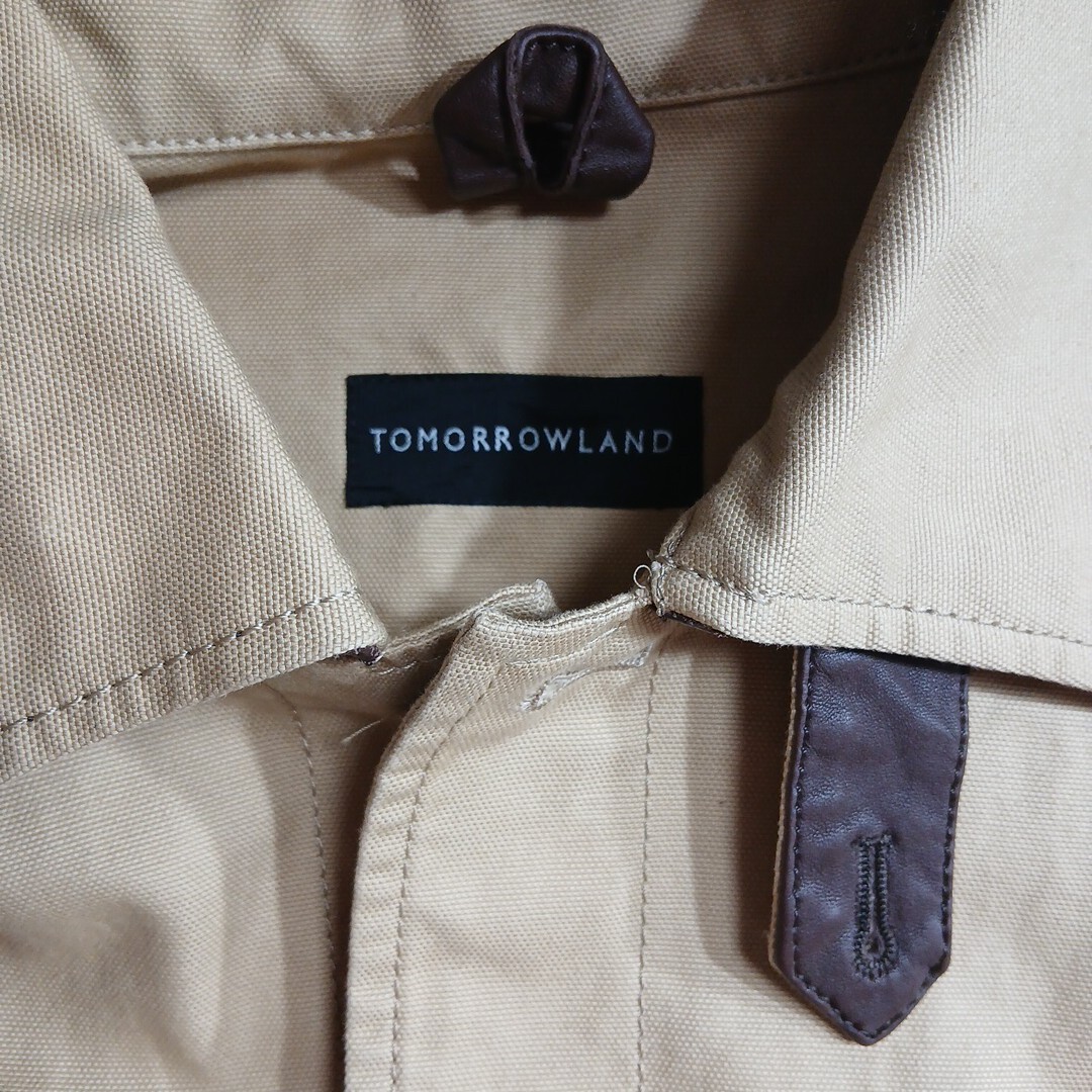 トゥモローランドのジャケットです。サイズはMで、実寸でおおよそ肩幅41センチ、身幅50センチ、着丈69センチ、袖丈60,5センチです。素材は、コットン74%、麻26%です。色は、ベージュです。多少使用感などございますが特に目立つキズや汚れは無いと思います。