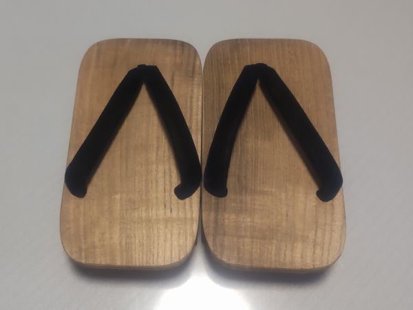 一枚目の画像の右側の下駄の親指のあたりにシミがあります。