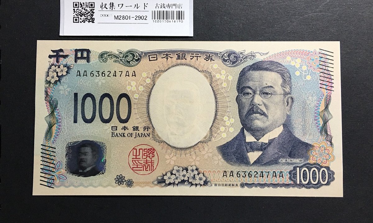 1円~北里柴三郎 新1000円札 2024年銘 初期AA-AA券/珍番 AA636247AA 完未品 収集ワールド