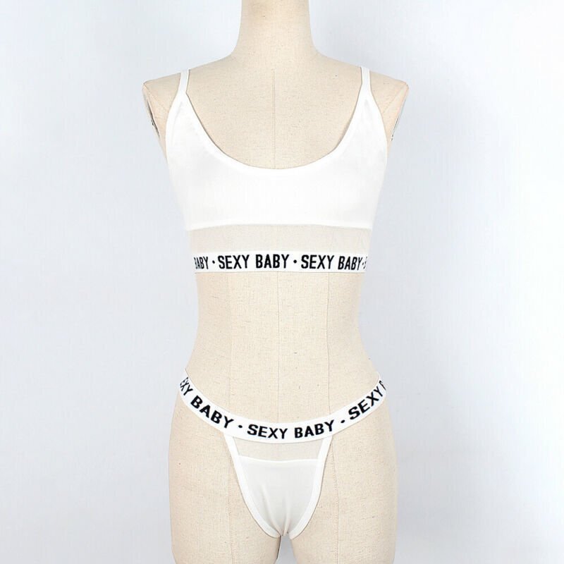 セクシー ランジェリー 白 ロゴ入り シースルー ブラ Tバック セット Lサイズ2枚セット