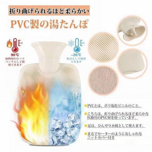 【安全素材】 湯袋のインナーライナーは安全で柔らかいPVC素材を採用しています。表地にはイミテーションラビットファー素材を使用しており、肌に優しく柔らかな肌触りです。 電気を使う必要がないので、火事になる心配はありません。暖かな冬を体験させてあげてください。 【長期保温】 アウタークロスカバーと組み合わせた厚みのあるPVC素材を使用しているため、物理的な伝導により均一に暖かさを伝え、長期的な暖かさを保つことができます。 お湯を入れて室内で使用すると、暖かさは3?6時間、布団で8時間から12時間ほど暖かさが持続します。 【漏れなし湯たんぽ】 蓋を回して湯たんぽのボトルを密閉するだけで安心してお使いいただけ、内部のお湯の漏れを気にする必要がありません。 お湯や氷水にも適しており、漏れがなく、季節を問わずお使いいただけます。 カバーはやわらかい素材で、暖かさを感じさせます。 【適用範囲】 湯たんぽは全身を温め、筋肉痛、肩こり、腰痛、月経痛、関節炎、ストレス、けいれんを和らげることができます。 氷水を加えて冷湿布として使用し、軽傷による腫れを軽減することもできます。