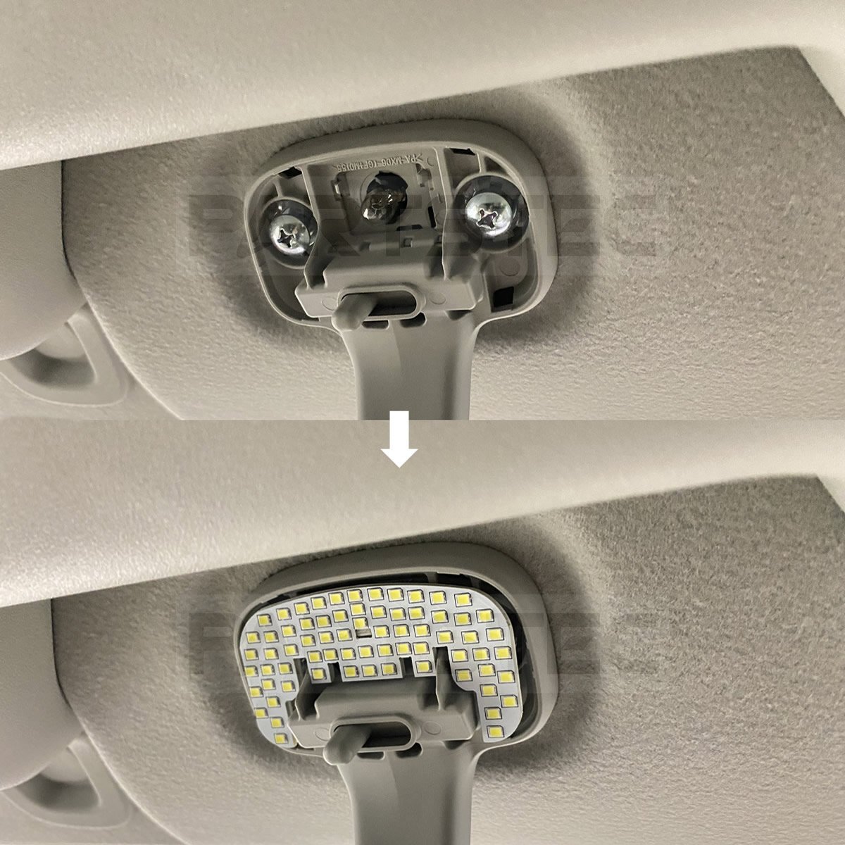 | 注意事項 | ・年式やグレードにより形状が異なる場合がございますので実車のルームランプ形状をご確認ください。 ・取付説明書等は付属しておりません。 ・車種によっては取付位置の内部形状に違いがある場合がございますが取り付けに問題ございません。 ・車種によっては微弱電流により消灯時にも微点灯となる場合があります。その際は別途微点灯防止抵抗が必要となりますのでお手数ですが別途お買い求めください。 ・本製品は輸入品のため、ご利用には支障のない程度の小傷や汚れ等付いている場合がございます。予めご理解の上ご入札下さい。 |