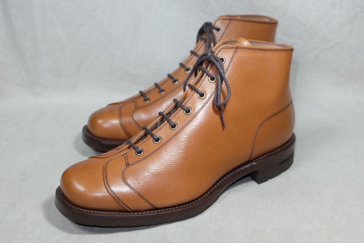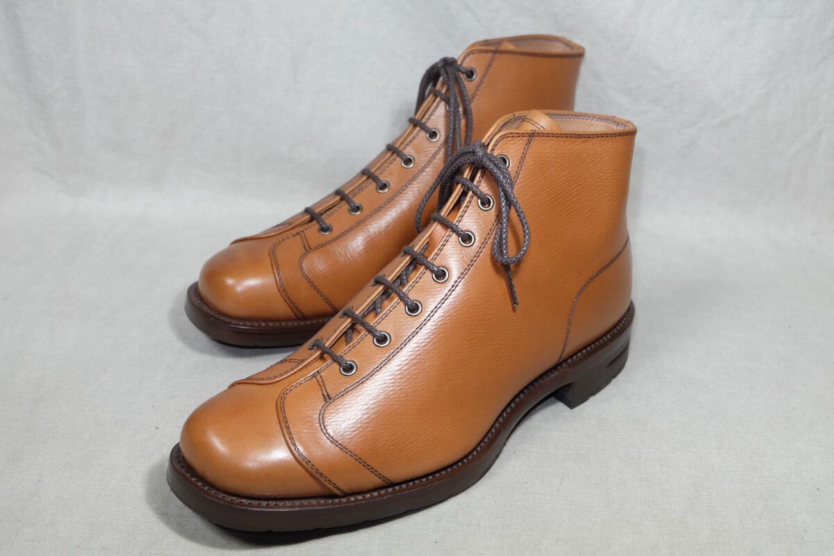 この度はアクセスありがとうございます。 日本の老舗レザーシューズブランドREGALの革質、作り、デザインすべてが上質なモンキーブーツになります。永い時間をかけて作られたしなやかで艶のある最高級グレインカーフレザーを使用し、ソールはレザーのダブルソールにvibramハーフソールでタフで堅牢に作られ、また堅牢でソール交換も可能なGoodyearWelted製法で丁寧に仕上げた1足です。アッパー、ソール、ライニング、インソール(中底)とほとんどがレザーで作られた日本の伝統とエレガントが詰まった仕上がりとなっております。細部まで丁寧な作り込みは日本のハンドメイドの良さを感じられる一足です。 ジョンロブ、オールデン、クロケット&ジョーンズ、チャーチ、エドワードグリーン、三陽山長、トリッカーズなど質実剛健な本格靴がお好きな方にオススメです。この機会にぜひご検討よろしくお願いします。 サイズ:26cmEE 型:モンキーブーツ アウトソール:31.5cm ソール最大幅:11cm ソール:レザーソール カラー:ブラウン 製産国:日本 素材:グレインカーフレザー ライニング:レザーライニング 状態:10段階中【9】 アッパー:まだまだ永くご使用いただける美品です。 ソール:まだまだ永くご使用いただける美品です。 付属品:なし 基本的にはノークレームノーリターンなのでご不明点等あればお気軽にご質問、ご連絡ください。 注意事項 確認はしておりますが、中古品のため小さなキズ、汚れ等を見落とす場合があるので神経質な方はご入札をお控えください。 サイズはあくまで標準的なサイズ感なので、実寸やメーカーサイズをご参考頂きますようお願いいたします。 三日以内にご連絡いただけない場合、評価の末再出品させていただきますのでご了承ください。 | |||