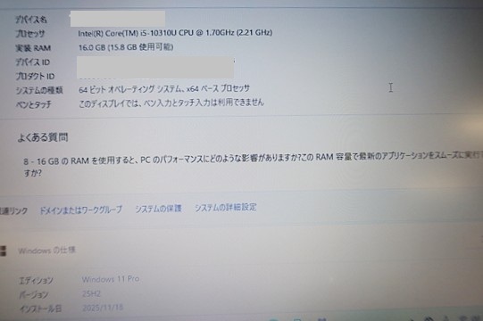 | ■CPU | Intel Core i5 10310U 1.7GHz | |||||||||
