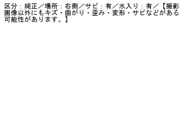 | 商品情報 | 区分:純正/場所:右側/サビ:有/水入り:有/【撮影画像以外にもキズ・曲がり・歪み・変形・サビなどがある可能性があります。】 | ||