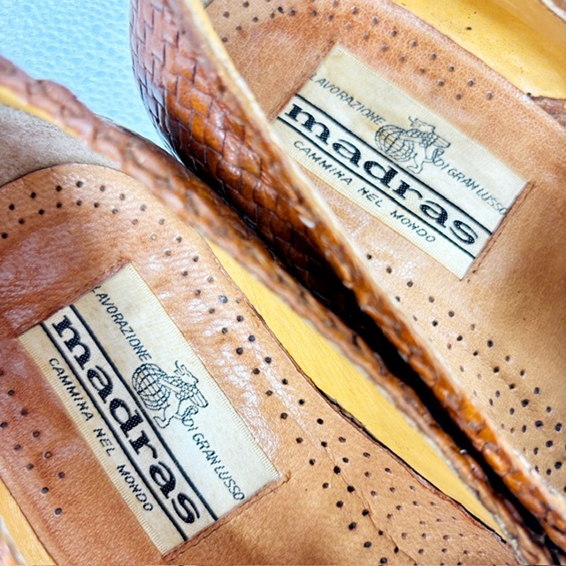 ご覧いただき、ありがとうございます。 オシャレで高級感のあるmadras マドラスのビジネスシューズです。 デザイン性:機能性共に定評のある商品です。 1足押さえてあるとファッションの幅も広がり大活躍するお勧めの商品です。 中古品のため、スレや傷、ヨゴレ等ありますが、その分お値打ちにしております。 詳しい状態は画像でご確認ください。 商品のサイズについて 表記サイズ 6 約24.0cm アウトソール全長 約25.0cm 全幅 約8.3cm (素人採寸) ●状態①「外観」 履きジワ、着用に伴う擦れ、傷がございますが、着用に支障はございません。 くわしくは画像で確認ください。 ●状態②「ソール・インナー」 インソール内ロゴ残っています。 カカトの削れ等、詳しい状態は画像でご確認ください。 ●その他・付属等なし、シューズキーパーは撮影用です。 | |||