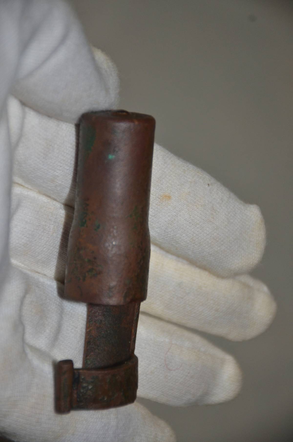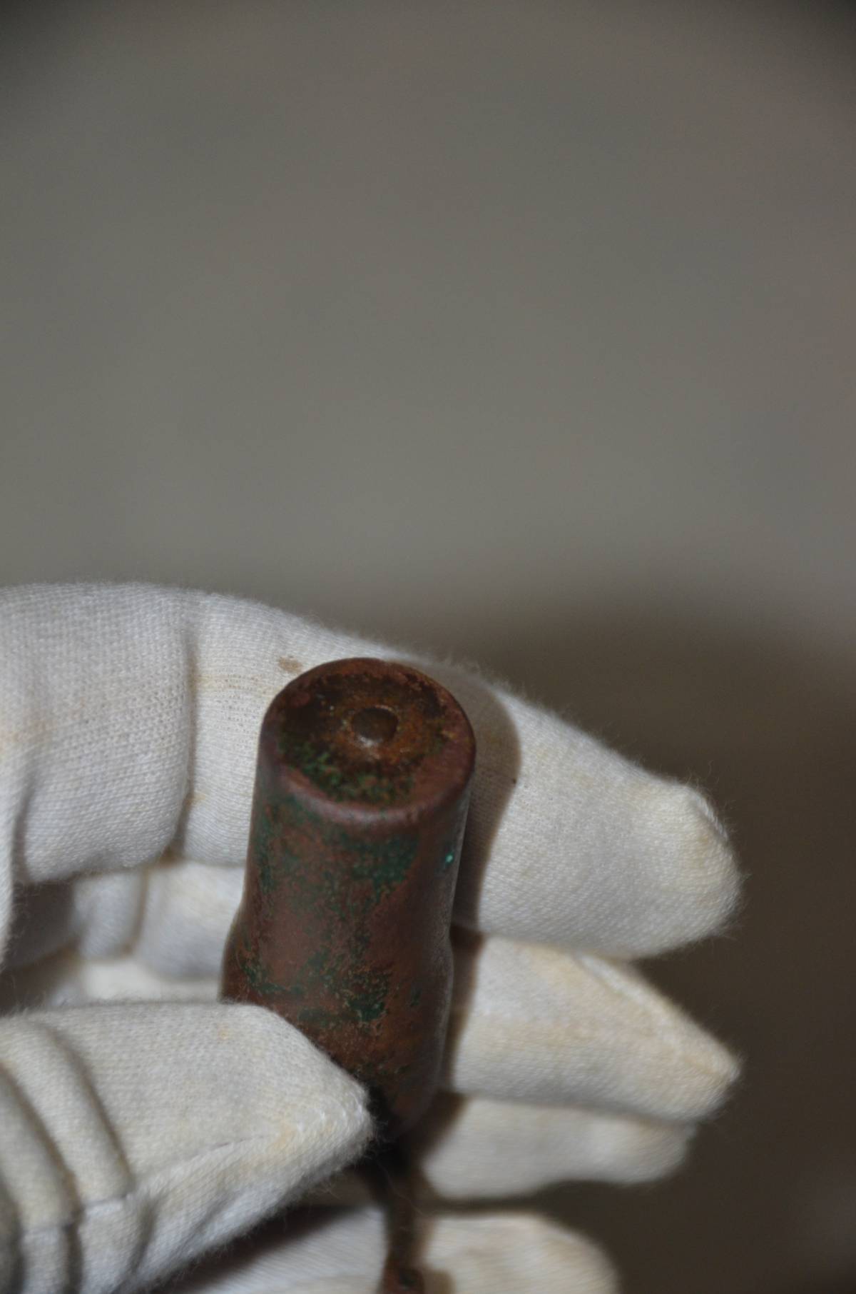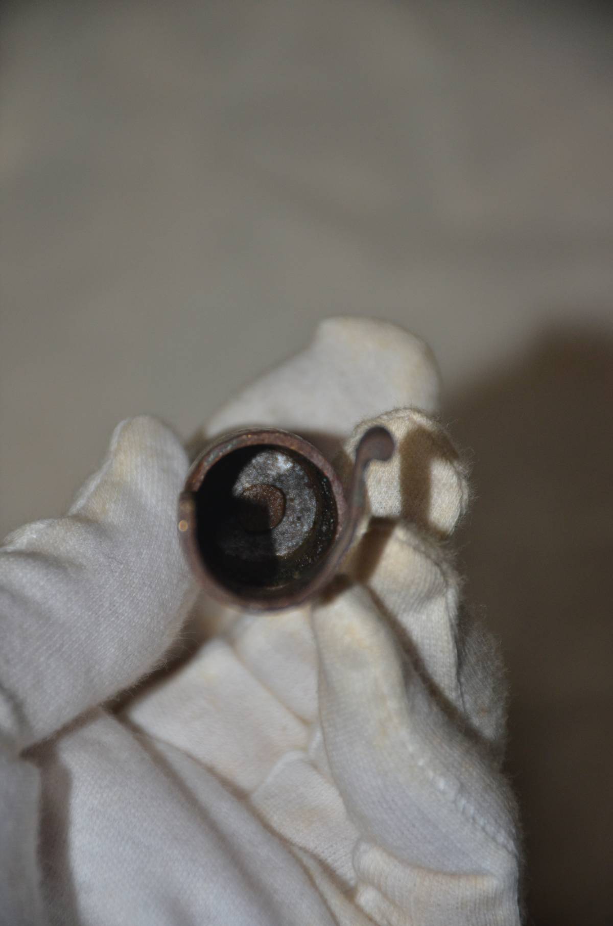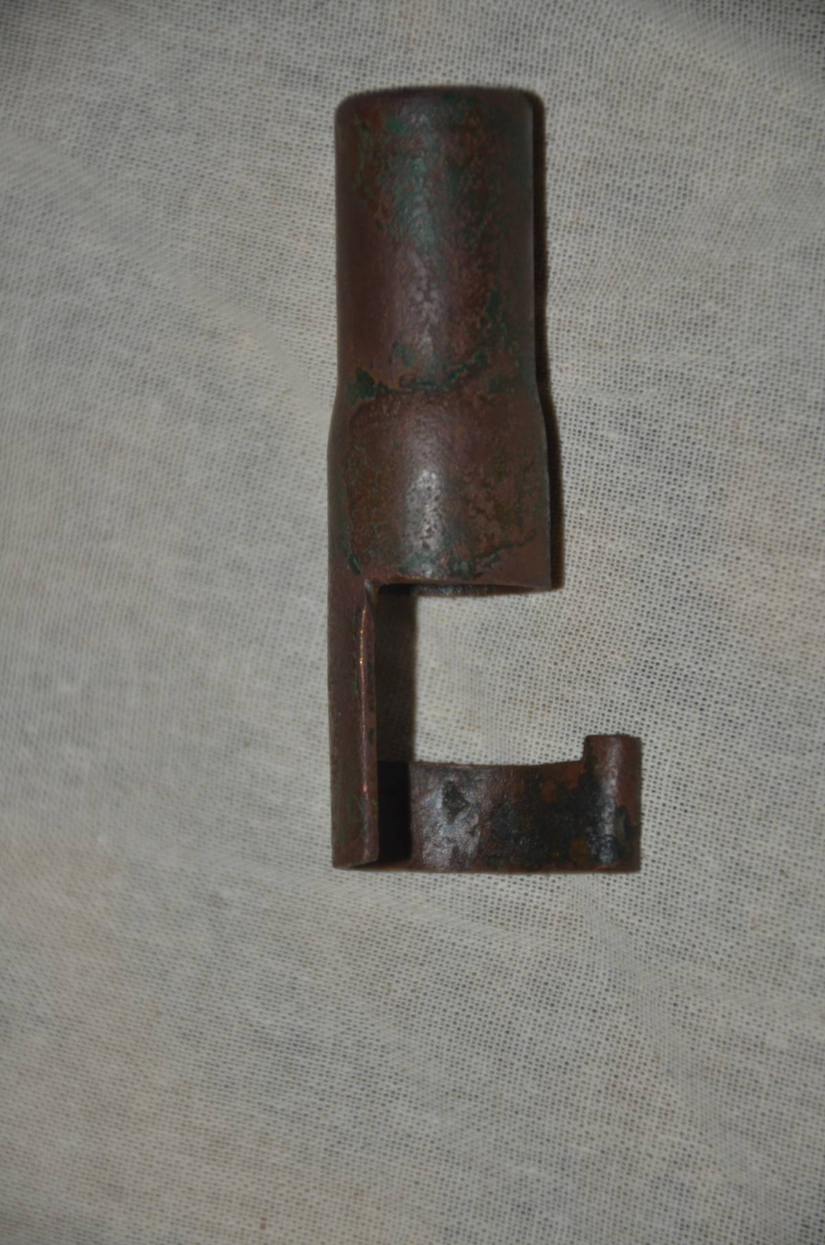 三八式歩兵銃、九九式歩兵銃の、銃口からのゴミを防止するための銃口蓋です。銅又は真鍮製で、中にスプリングが入っています。友人に38式と99式小銃を持ってきてもらいましたが、わずかに止めることが出来ませんでした。モデルガンが傷つくので、装着は止められた方が良いです。サイズは、長さ6.7センチ。直径17.3ミリが26ミリ、19.3ミリが15.5ミリ、後部の幅は25.8ミリで25ミリです。本文下の追加写真もご覧ください。ヤマト運輸宅急便で、全国一律700円でお送りさせていただきます。