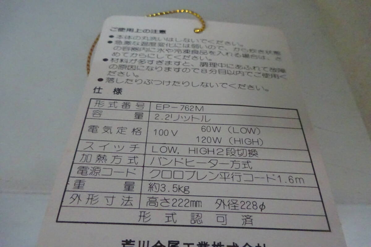 | ★577)陶器製煮込み鍋・マルビシ「スローポット ミニ」EP-762M 箱あり、説明書なし※中古品/動作OK/使用感現状品■80 *ご覧いただきまして、誠にありがとうございます* 【注意】送料は0円ではありません。説明文あとに料金表がございます、ご確認の程よろしくお願い致します。またタイトル■マーク後の数字は梱包サイズです。送料は日本郵便ゆうパック基本料金です※ ※いかなる場合も即決、配送業者変更、着払い、直接お引渡し、同梱、まとめ発送はお断りしております※ ※全ての機能をチェック行っておりません。また下記の商品状態・画像をご確認いただき、ご納得頂ける方のみご入札をお願い致します※ 【付属品】画像1枚目が全てです。 【サイズ】 【商品状態】倉庫にて長期保管の中古品です。内鍋が熱くなる確認しました。調理等の動作は未確認の為ジャンクと致します。使用感ありますが現状お渡しでお願い致します。使用期間は不明です。神経質の方はご遠慮願います。 できるだけ画像を掲載していますが見落しがある場合がございます。画像にてご判断お願い致します。 また倉庫長期保管品ため不備や故障のタイミングがわかりませんジャンクと致します。 ※長期保管品ですので不良等があった場合もノークレーム・ノーリターンでお願いします ※いかなる場合も同梱発送の対応はできません※ ※中古品である事を御理解いただき入札を御願い致します。 ※その他、多数出品中です。是非そちらも御利用ください。同梱不可です※ |