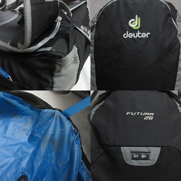 ●deuter FUTURA 28 通気性のよい背面システムで背中が蒸れにくくなっています。 サイドポケット搭載。 ジップで気室切替可能(2気室になります) メインポケットの他フロントに小ポケットあり トレッキングポールループ サイドボトルポケット チェスト・ウエストベルト ハイドレーション対応 レインカバー内蔵 【状態】 簡易清掃済みですが、汚れ・スレ・内部コーティングの剥がれ・ひっかきキズ、使用感はあります。 ●容量:28L ●重量:約1270g ●サイズ:H52×W33.5×D22cm ※素人採寸になりますので、多少の誤差はお許し下さい。 | ||