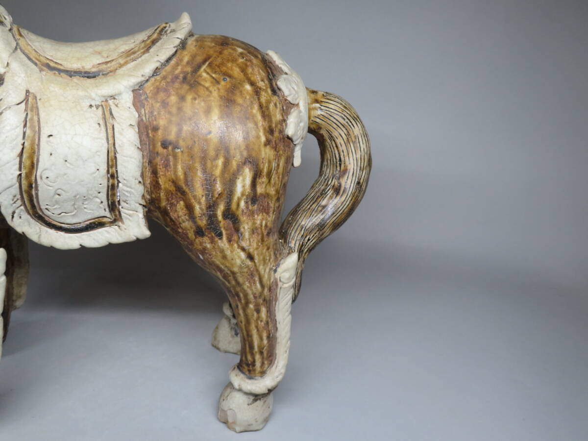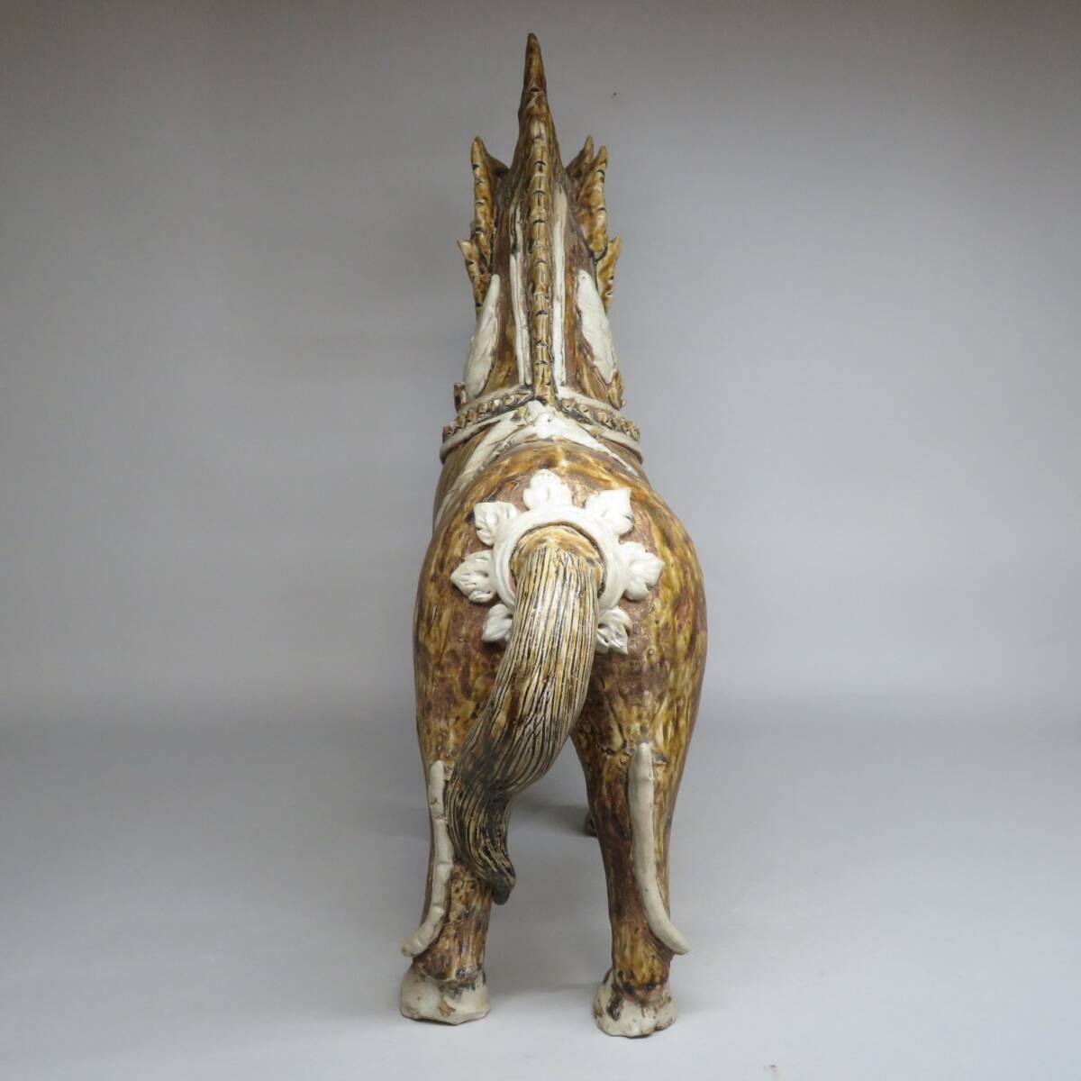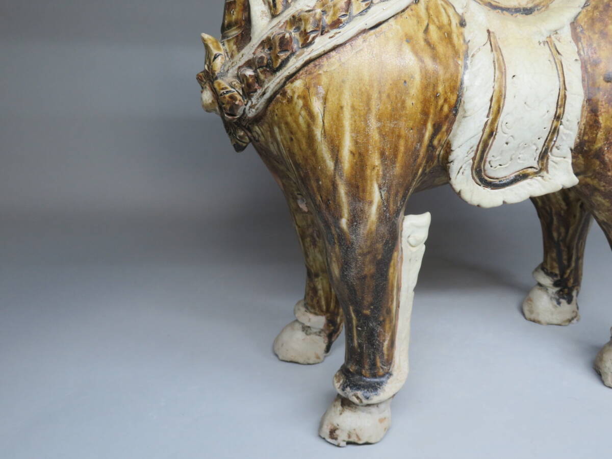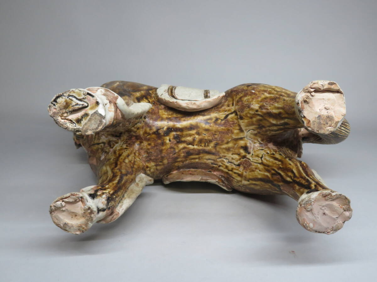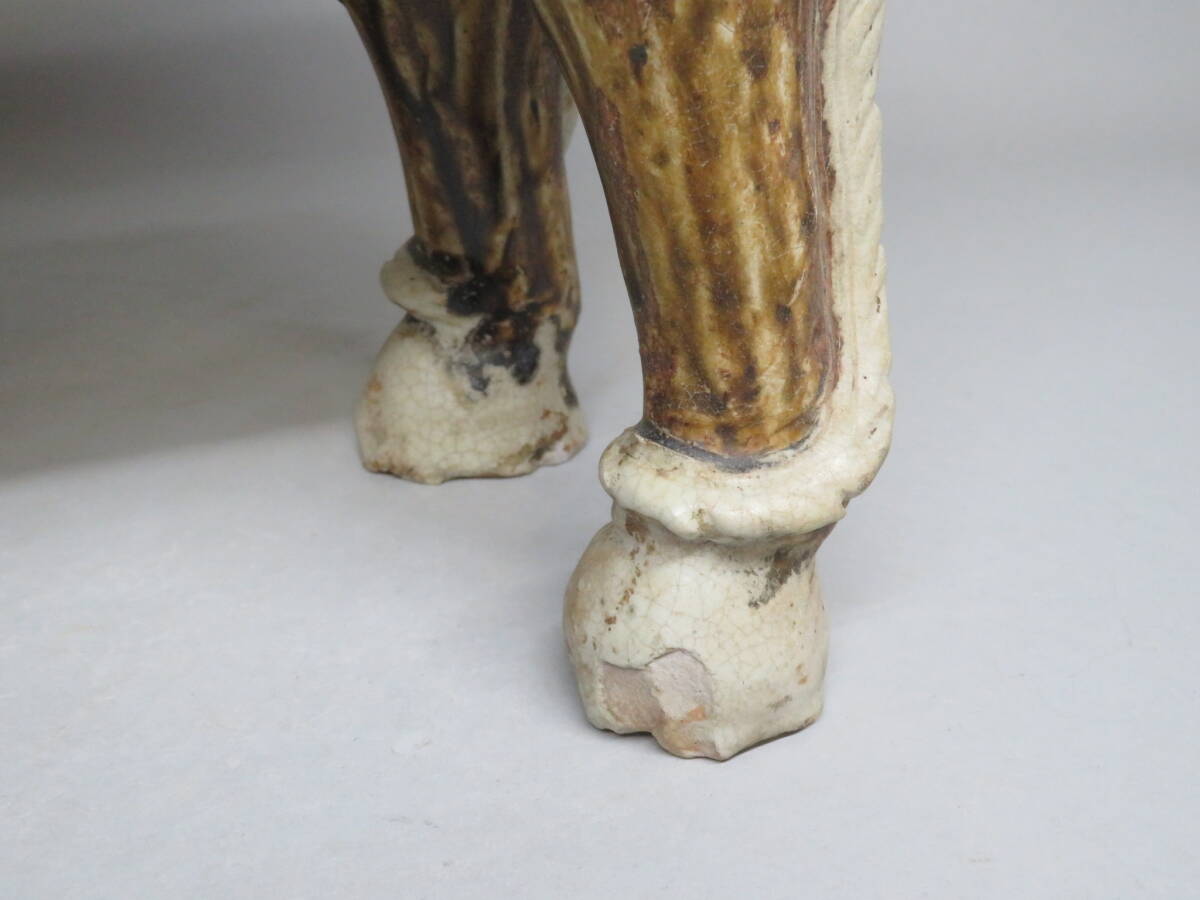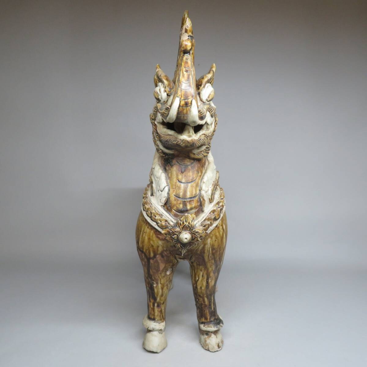 | 「都内コレクター所蔵品」タイ古陶磁 スコータイ時代 陶器製 白濁褐釉 ノラシンガ像 置物 スワンカローク◆発掘品 | |||