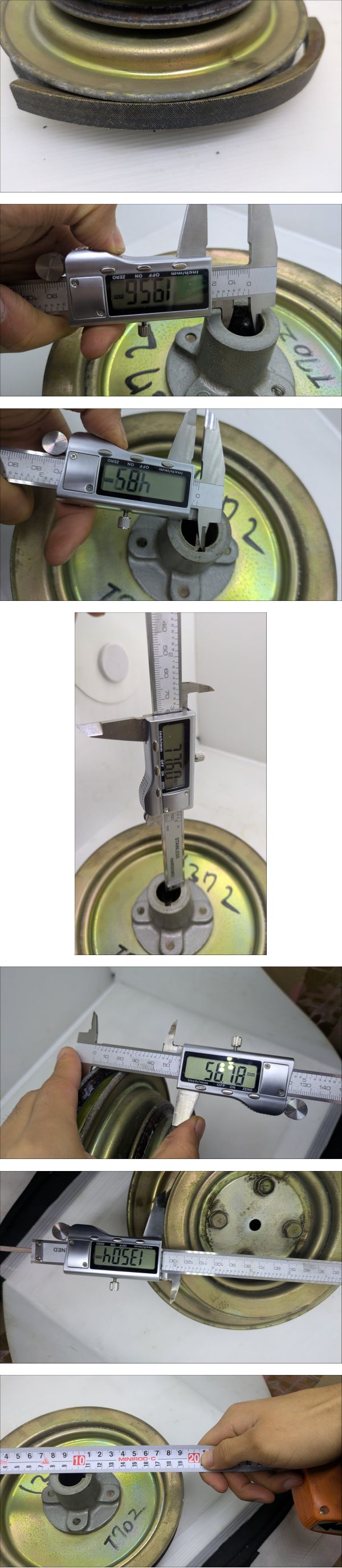 | ●●最後まで読んで下さい●●納得した上でご入札してください●● ●大型機械用のアカウントは**こ ち ら**です。 ●当方の別出品物を同時購入しても送料分安くなりません。 ●発送料金は入札ボタン付近にあり、沖縄、北海道、離島以外一律です。 ●塩尻市から発送します。 ●離島発送はできない場所がございますので、事前にお問い合わせください。 ●発送日は月、水、金、日です。急ぎの場合はご連絡をお願いします。 ------------------------------------------------------------------------------------------- ●2連のプーリーです。 ●Bベルトです。 ●メーカー:クボタ ●型式:T702 ●軸 径:約Φ20mm ●鍵 幅:約5mm ●プーリー外径:約Φ135/205mm ●全体 厚さ:約71.5mm ●ベルト部 厚さ:約56mm ●書いたインクは消さずに発送します。 ●素人寸法のため、測定誤差があります。 ●中古品のため、サビや汚れがあります。 ●錆は各自で取り除いてください。 ●現状写真の通りのまま送ります。 ------------------------------------------------------------------------------------------- ●下の方にも画像がございます。※たまに写真の枚数が不足していて画像がない場合があります。 ●落札後、ご指定配達の時間帯がある場合はあらかじめご連絡してください。 | |||