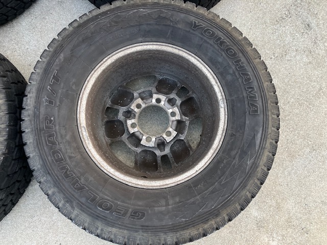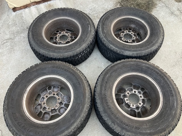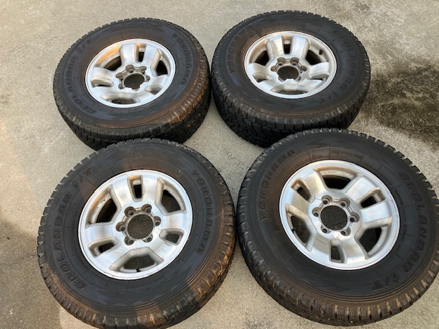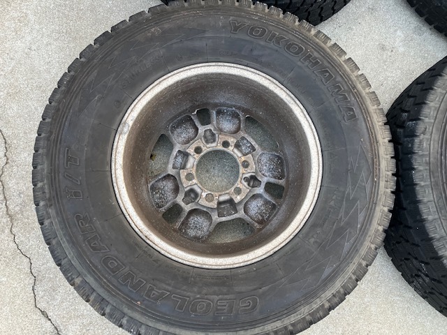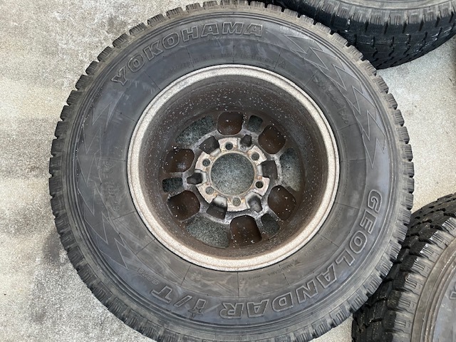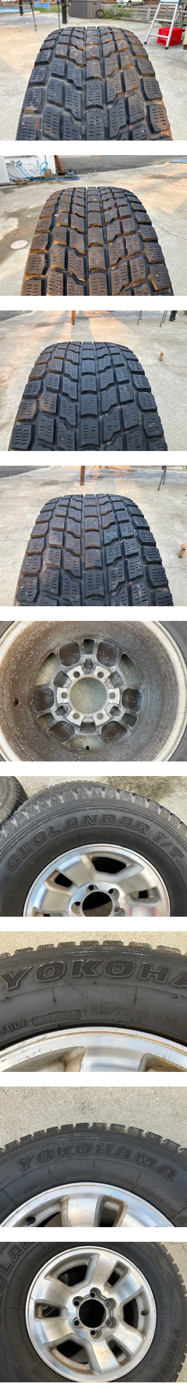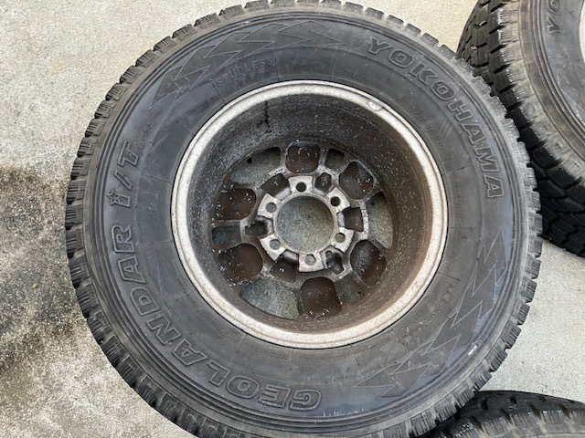 □■□ホイール□■□ ブランド・・・トヨタ サイズ・・・・16×7JJ ホール数・・・6穴 PCD・・・・139.7 ハブ径・・・・106mm(手測) オフセット・・+15 □■□タイヤ□■□ メーカー・・・ヨコハマ 品名・・・・・GEOLANDAR i/T サイズ・・・・265/70R16 製造年・・・・2008年 残り溝・・・・約4mm ![]() powered by auction-labo.com □■□コメント□■□ トヨタ純正16インチタイヤホイールセットの出品です! 中古品が気にならない方、ご理解ある方のご入札をお待ちしております。 格安商品をお求めの方、オススメです! 是非ご検討下さい! 直接引き取り歓迎!! 出品地域:熊本県熊本市南区野田 |