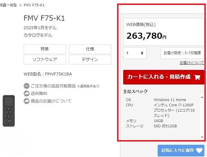 ◎ 商品仕様 ・ モデル名 ⇔ FMV F75-K1 (FMVF75K1BA)