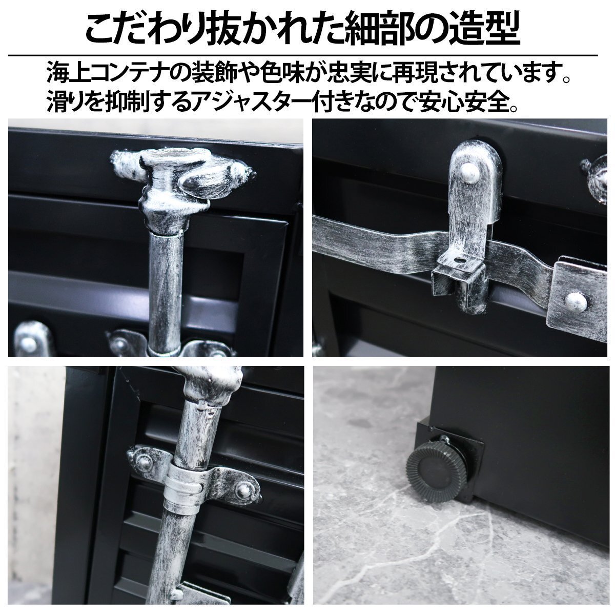 ※商品は画像一枚目の物になります。 ・レトロな海上コンテナモチーフのマルチボックスです。 ワイルドで無骨な、インダストリアル感溢れるデザインは、 お部屋をかっこよく彩る「男前インテリア」にピッタリ! ・見た目もおしゃれで中の物が取り出しやすい観音開きタイプとなっております。 ・収納スペースは広々とした二段構成で、 散らかりがちな雑誌やちょっとした小物を収納しておくのに活躍するほか、 3桁のパスワードを設定できるダイヤルロックが付属しており、 それを用いる事で貴重品などを収納しておく金庫としてもお使い頂け、 幅広く様々な物を収納出来る汎用性の高い商品となっております。 ・商品単体がインパクトのあるデザインをしているので、収納ボックスとして使用せずとも、 お部屋やお店を彩るインテリアオブジェとしても馴染みます。 ・コンテナヤードで見かける海上コンテナの装飾や風合いが忠実に再現された ヴィンテージ品の様な雰囲気もあわせ持つ味わい深い一品。 個性溢れるコンテナ雑貨で、お部屋を華やかに飾ってみてはいかがでしょうか? ■本体サイズ(約) 横54cm、高さ40cm、奥行き32cm ■収納スペースサイズ(約) 横50cm、高さ19cm、奥行き28cm ■重量(約) 6.9kg ■素材 ブリキ ●付属品 ボックス本体×1 アジャスター(本体装着済み)×4 ダイヤルロック×2 |