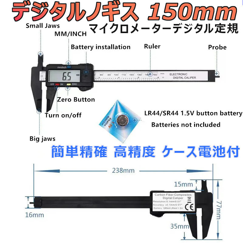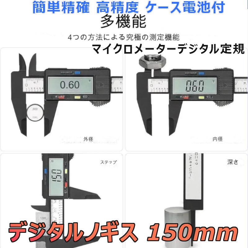 「送料無料」簡単精確 デジタルノギス 150mm カーボン液晶表示 ゼロセット機能 多機能コンパクト,ケース付,予備電池サービス