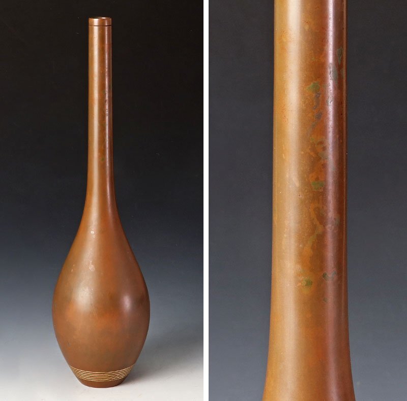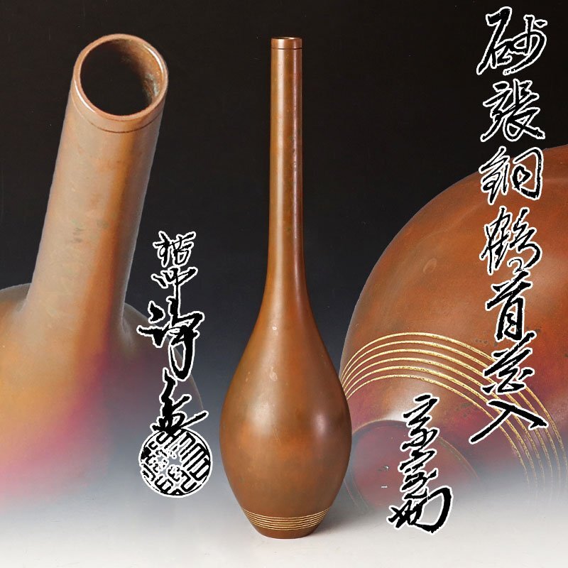 | 【古美味】十一代中川浄益『淡々斎書付』砂張銅鶴首花入 翠竹庵好 茶道具 保証品 |