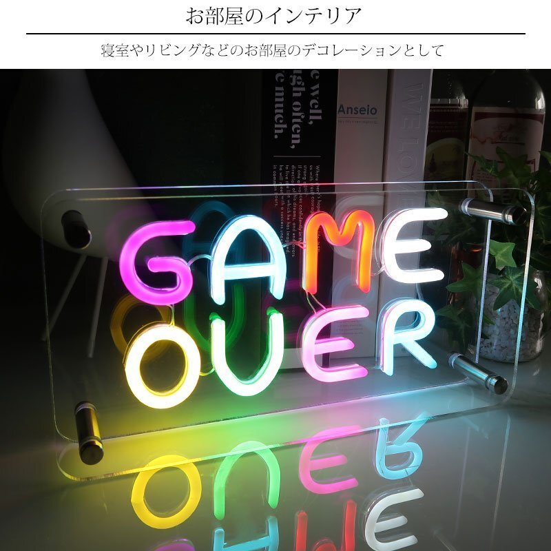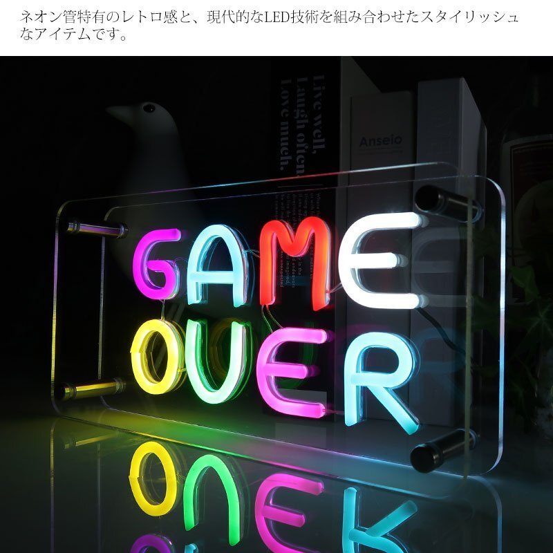 LEDを使用したネオンライト「GAME OVER」サインです。 透明なアクリル板にカラフルなLEDライトを埋め込み、鮮やかに光るデザインが特徴です。 置き型のため店舗やインテリアとして簡単に設置可能です。 省エネ設計でありながら明るく視認性が高いため、昼夜問わず視覚的なインパクトを与えます。 ネオン管特有のレトロ感と、現代的なLED技術を組み合わせたスタイリッシュなアイテムです。 USBで簡単に電源供給が可能です。USBポートに接続するだけで使用できるので、電源の場所を選ばず手軽に設置できます。 また、電源スイッチが付いているため、必要に応じてワンタッチで点灯・消灯が可能です。手軽にON/OFF操作ができるため、日常使いにも便利です。 ■商品詳細 サイズ(約):高さ15cm、幅30cm、奥行き5.5cm 重さ(約):700g 材質:アクリル板 ※こちらの商品はお客様にて組み立てが必要になります。 ※アクリル板にフィルムが貼っていますので剥がしてお使いください。 注意事項 ※商品のカラーにつきましては、お使いのモニターの設定などによって実物と異なる場合があります。 ・この商品は海外からの輸入品の為予告なく仕様など変更する場合が御座います。 ・輸入品の為、傷や塗装の剥がれ、多少の歪み等ある場合がございますのでご了承願います。 ・この商品は専用の箱がない為、簡易梱包、エアークッションでの発送となります ・万が一、当製品を使用した事で損害などが発生いたしましても責任は負いかねますのでご了承下さい。 |