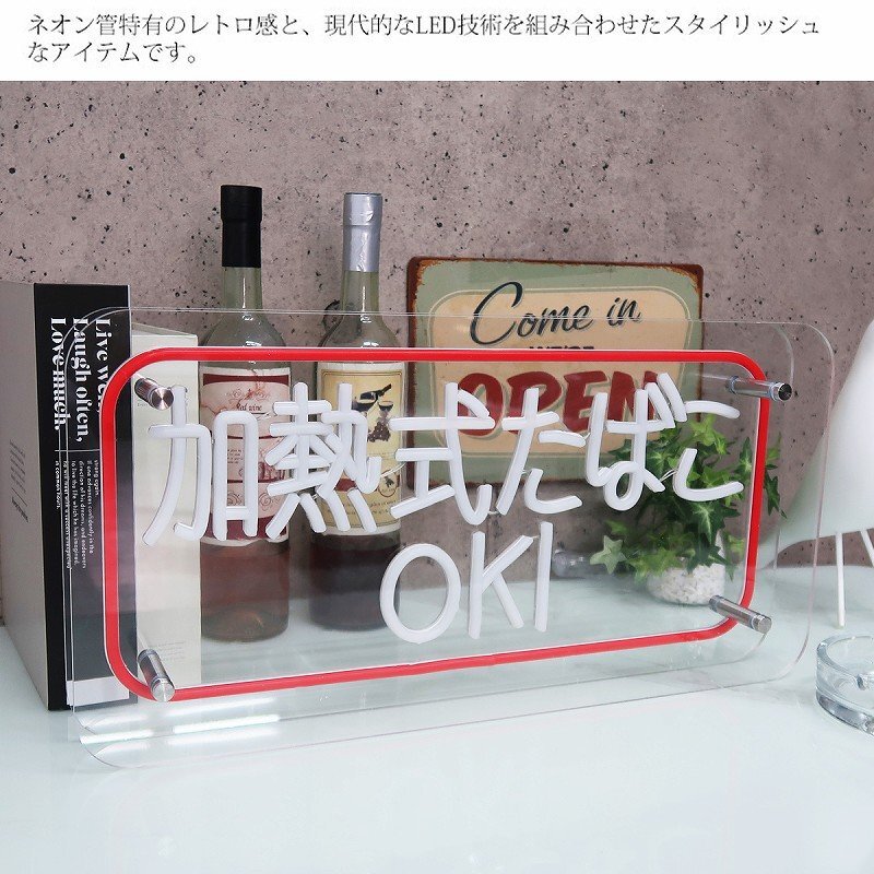 LEDを使用したネオンライト「加熱式タバコ OK!」サインです。 透明なアクリル板にカラフルなLEDライトを埋め込み、鮮やかに光るデザインが特徴です。 置き型のため店舗やインテリアとして簡単に設置可能です。 省エネ設計でありながら明るく視認性が高いため、昼夜問わず視覚的なインパクトを与えます。 ネオン管特有のレトロ感と、現代的なLED技術を組み合わせたスタイリッシュなアイテムです。 USBで簡単に電源供給が可能です。USBポートに接続するだけで使用できるので、電源の場所を選ばず手軽に設置できます。 また、電源スイッチが付いているため、必要に応じてワンタッチで点灯・消灯が可能です。手軽にON/OFF操作ができるため、日常使いにも便利です。 ■商品詳細 サイズ(約):高さ25cm、幅50cm、奥行き5cm 重さ(約):1.7kg 材質:アクリル板 ※こちらの商品はお客様にて組み立てが必要になります。 ※アクリル板にフィルムが貼っていますので剥がしてお使いください。 注意事項 ※商品のカラーにつきましては、お使いのモニターの設定などによって実物と異なる場合があります。 ・この商品は海外からの輸入品の為予告なく仕様など変更する場合が御座います。 ・輸入品の為、傷や塗装の剥がれ、多少の歪み等ある場合がございますのでご了承願います。 ・この商品は専用の箱がない為、簡易梱包、エアークッションでの発送となります ・万が一、当製品を使用した事で損害などが発生いたしましても責任は負いかねますのでご了承下さい。 |
