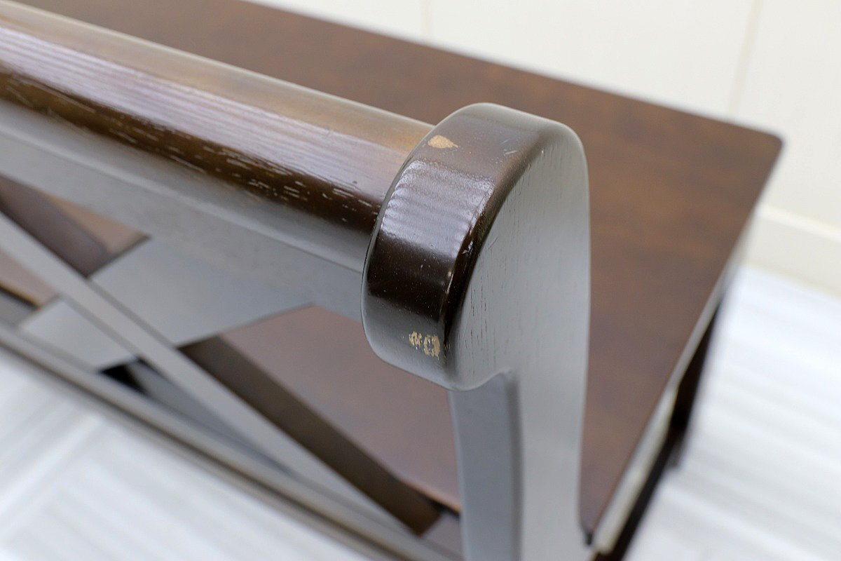 | ★ご覧いただき誠にありがとうございます★ ◆メーカー:カリモク ◆メーカーサイトはこちら ◆karimoku STYLE◆ カリモクは、昭和15年に愛知にて創業以来、上質な木材を活かした家具製作に高い評価を得ている国内でも数少ない老舗家具メーカーの1つです。日本国内で、オリジナル家具デザイン・製造・販売・リペア・オーダーメイド家具も手掛ける家具メーカーならではの確かな品質に定評があるブランドです。カリモクブランドのキャッチコピーにあるように 「木と人の家具」 にふさわしい、木を知り尽くした家具メーカーによる品質は現在も尚、高く支持されています。 ◆カリモクのラインナップの中でも人気の高い「ルスティックシリーズ」です。無垢材を手斧で削ってそのまま組上げたような自然派志向のカントリーファニチャーです。現在では生産が終了している貴重なシリーズです。 ある程度使用感がありますが、それも味として楽しめる無垢の家具です。商品はすべて専門スタッフがクリーニングを行っております。ご検討よろしくお願い致します! ■サイズ:約-横幅-120×奥行-59×高さ-73(41)cm ※( )は座面までの高さ ● コンディションランク【B】 SS=新品、未使用の新古品、新品同様品 S=モデルルームなどの展示品、または使用感が少ない美品 A=大きく美観を損なうダメージはなく、程度は良好 B=使用感あるが日常使用上問題無し C=使用するには若干の手直しが必要 D=ジャンク品 ●あとはすべて写真にてご審査願います。写真には写りきらない、よごれやダメージ、詳細部分の、記載ミスなどがもしあっても、その旨のクレームはご勘弁下さい。上記内容をご理解頂き、ノークレーム・ノーリターンでお願いいたしいます。 |