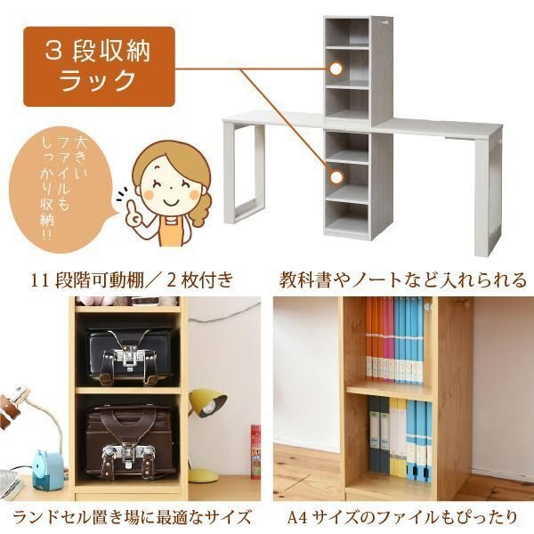 兄弟・親子で並んで使えるコンパクトでシンプルなツインデスクです。 ラックの位置が変えられ、 お部屋に合わせて2つのデスクをくっつなけたり離したりと様々なコーディネートが楽しめます。 |