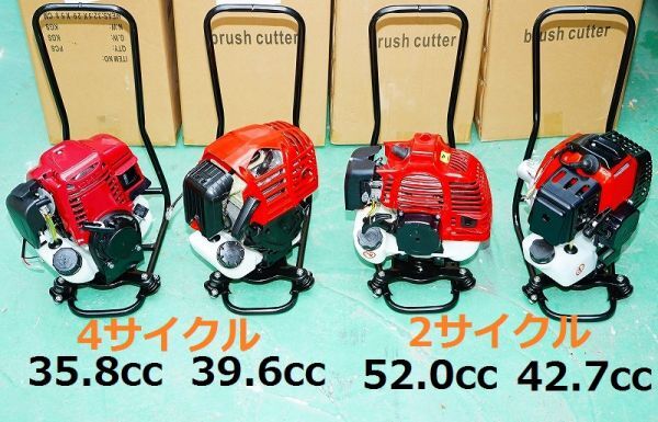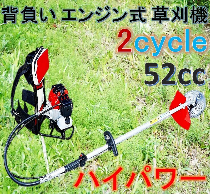 | 商品説明 | エンジン背負い式 草刈機 2サイクル 52ccタイプとなります! 特徴 ●エンジン式の強力なパワーで雑草から頑固な笹竹や細木までバリバリ刈れる! ●背負い式草刈機は体に掛かる重量負荷を分散できるので長時間の作業でも疲れにくい! ●肩掛けタイプなどに比べ作業範囲が広くできるので、斜面の上や下など自在に刈れます! ●背当てパッド入りリュックで作業快適! ●リュックに小物入れ部を搭載! ●エンジンの振動吸収をするスプリングマウントを採用! ●グリップ・アクセル操作性に優れた小型レバーを採用! ●ハイパワーな2サイクル52cc! 【商品内容】:エンジン背負い式 草刈機 2サイクル 52cc 【草刈機タイプ】:背負い式 【エンジンタイプ】:スパークプラグ式2サイクル 【排気量】:52cc 【スタート方式】:リコイル式 【使用燃料】:混合ガソリン(25:1) 【混合用オイル】:2サイクル混合用オイル 【カラー】:オレンジ・紅赤系 【その他】:丸刃チップソー1枚付属(230×25.4×36Tタイプ) 【重量1】:エンジン部 約5.4kg(パイプ骨格含む、油脂・リュック含まず) 【重量2】:リュック部 約0.8kg 【重量3】:シャフト部 約2.3kg(持ち手・防石カバー含む、先端刃含まず) 【重量4】:フレキホース部 約1.2kg 【重量5】:チップ 約0.3kg(230×25.4×36Tタイプ) ※重量は全て実測値 ○注意事項○ ※使用時やその直後はエンジンが熱くなるので火傷に御注意下さい。 ※使用中はメガネや保護具などを装着し刃の跳ね返りや飛び石に十分注意して下さい。 ※足元が不安定な場所などでのご使用は危ないのでお止め下さい。 ※使用時は不必要にエンジン回転を上げず、適正な回転域で御使用下さい。 (エンジン損傷や火傷防止の為、通常時は概ねアクセルの半開前後域にて使用) ※改造/本来の目的以外/強い衝撃などはお控え下さい。 ※本製品を使用したことによる如何なるトラブル・損害・損失に対して、当方は一切の責任を負いかねますので予め御了承願います。 ※仕様や意匠など改善の為に予告なく変更される場合も御座いますので予め御了承願います。 ※写真は参考一例のため実物とは色味や形状に細かな違いがある場合が御座いますので予め御了承願います。 ※こちらは構成品目が多い為2箱での梱包となります。 ※複数口の荷は運送会社が複数に分かれて分送される場合が御座いますので御了承願います。 ○初期使用時○ ※商品到着時は組み立て前に最初にエンジンの動作確認をして下さい。 エンジンを掛ける手順は1:燃料を入れる。2:ポンプを押して燃料をキャブレター内に回す。 3:チョークを開ける(エアクリーナーボックス横の上下レバーをオン側にする(主に下側・この様なlllマーク側)) 4:コイルを勢い良く引いて回す。(通常は5~10回程度引くうちには掛かります) エンジンを掛ける手順は写真説明も参考願います。 ※この段階でエンジンが掛からない場合は、点火系統確認やキャブレター・スロットル微調整等が必要になる場合が御座います。 ※エンジンが掛かるのを確認後は写真を参考にホースやシャフトを組み立てて下さい。 ※工場出荷時にはエンジンを掛けての動作確認がされていますので、内部に少量燃料が残っている場合が御座います。 ※エンジンを切る場合は手元レバーのボタンを長押し(モデルによりオフ側)に操作又はチョークを閉じて下さい。 ※エンジン機構に詳しくない方は、詳しい方にアドバイス等受けてから動作確認・操作等して下さい。 ※個別に操作法や手順を御案内することはこちらでは出来ませんので予め御了承願います。 【その他・御取引詳細に関して】 ◎商品到着後1週間は初期不良の対応をさせて頂きます。 (初期不良の場合は交換又は部品供給の対応を致します。) ◎部品供給の場合は部品輸入等で多少御時間を頂く場合が御座います。 ◎大変恐縮ですが、商品対応は可能ですが交換・供給等に掛かる送料などは御負担をして頂きます。 ◎また通常では考えられない様な使い方や劣悪な環境下での御使用等、製品に起因しない原因での破損等及び加工等されている物などは対象外となります。 ◎初期不良対応は製品に対してだけですので、その他の付随する損害や事故等に関しては当方は一切の責任を負いません。 ◎御取り引き後は返品・返金は基本的に不可になります。 ◎こちらは輸入商品ですので日本製品に比べて仕上げが甘い点や細かな傷・外箱汚損等もあるかと思いますが、その辺りは寛容な御心で御理解を願います。 (使用に障り無い軽度の凹みや傷等はクレーム対応外とさせて頂きます) ◎送料はオークションページ記載の送料となります。 (元払い発送のみで、運送会社指定や日時指定・直接引き取り等は出来ません。) ◎こちらは複数セット御購入の場合、セットごとに送料が掛かります。 ◎落札後は48時間以内にご連絡いただける方で、2~3日内にお支払可能な方のみご入札お願い致します。 (出来ない場合は落札者様都合で削除処理致しますので御注意下さい。) ◎入札イコール上記内容に御