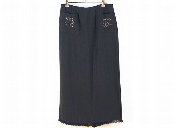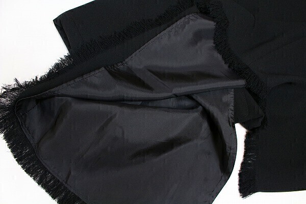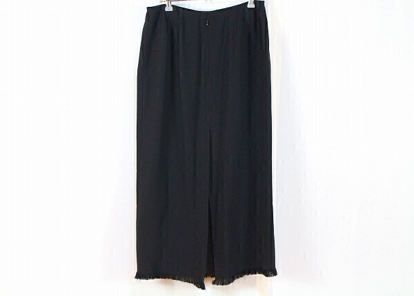 【表記サイズ】11 【カラー】黒 ※撮影時や画面の明るさにより色が変わる場合がありますのでご了承ください。 【実寸サイズ】ウエスト 76㎝・ヒップ 104㎝・総丈 88㎝(フリンジ含む)・スリット丈 51㎝(フリンジ含む) ※平置き素人採寸の為、多少の誤差はご理解下さい。 【商品状態】 小さな糸引きがありますが綺麗めな状態です。 ※一人で状態確認をしています。見落とす場合もありますのでご了承下さい。 |