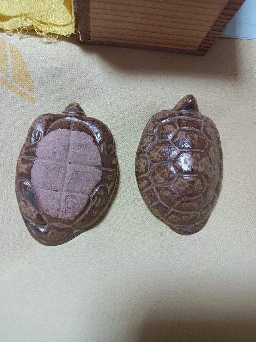 布志名焼 亀型 香合 土屋 善四郎 雲善 造り 未使用のままの長期自宅保管品です。 サイズ 横幅 約 5.5cm 奥行き 約 8cm 高さ 約 2.5cm 共箱、共布、栞付き 経年の感ありです。