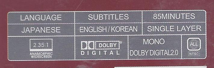 | DVD仕様 | モノクロ/85分 4:3 スタンダード/片面・2層 音声:ドルビーデジタル |