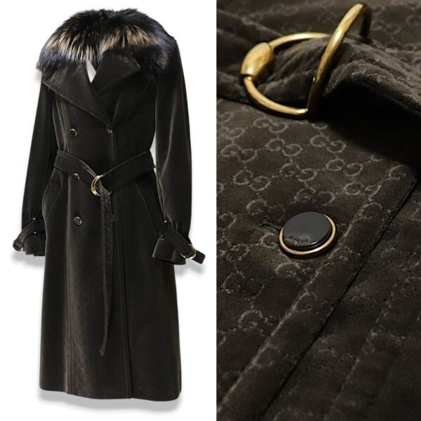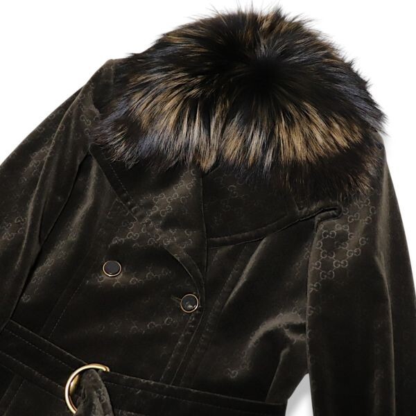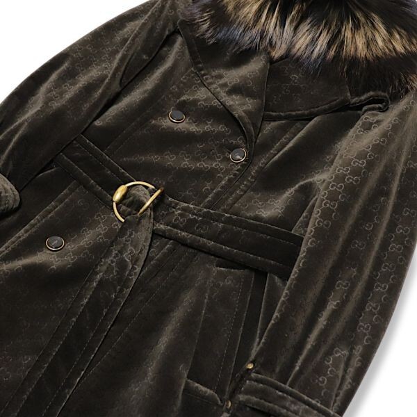 | 良品 ◆超レア◆ 正規品 GUCCI グッチ ファー GG ロゴ 総柄 ベロア ベルベット ロング コート 42 ブラウン イタリア製 | ||||