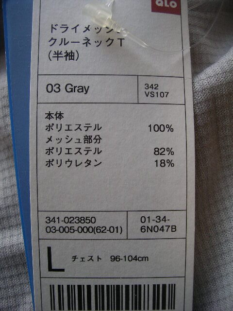 商品名 未使用品★タグ付き★ユニクロ★ドライメッシュクルーネックT(半袖)★Lサイズ★色柄は写真のとおり(GRAY)です。★シンプルで飽きのこないデザインは流行に左右されることなく、使い勝手は抜群!★本体は、ポリエステル100%、メッシュ部分は、ポリエステル82%、ポロウレタン18%の商品です!★特徴1 吸汗速乾 汗をかいてもすぐに乾きます。肌ざわりは、さらっとさわやか。水分をすばやく吸収して発散させる機能は、洗濯しても変わりません。★特徴2 接触冷感 冷感効果で、着用時と発汗時にひんやりとした着心地をお楽しみいただけます。★特徴3 抗菌防臭 特殊な加工によってにおいを抑えます。★特徴4 紫外線カット お肌にダメージをもたらす紫外線の影響を減らします。★ユニクロのBODY TECH は、慶應義塾大学との共同で体の運動機能を科学的に検証し開発してつくられたさまざまなスポーツに対応できるウェアです。発汗のしかたを研究し、効率よく汗を逃がし、体温の上昇を抑える構造と機能をもたせた快適なスポーツウェアです。★他にも、いろいろ出品していますのでよろしくお願いします。★愛知県から、クリックポストで発送します。送料は、全国一律185円です。