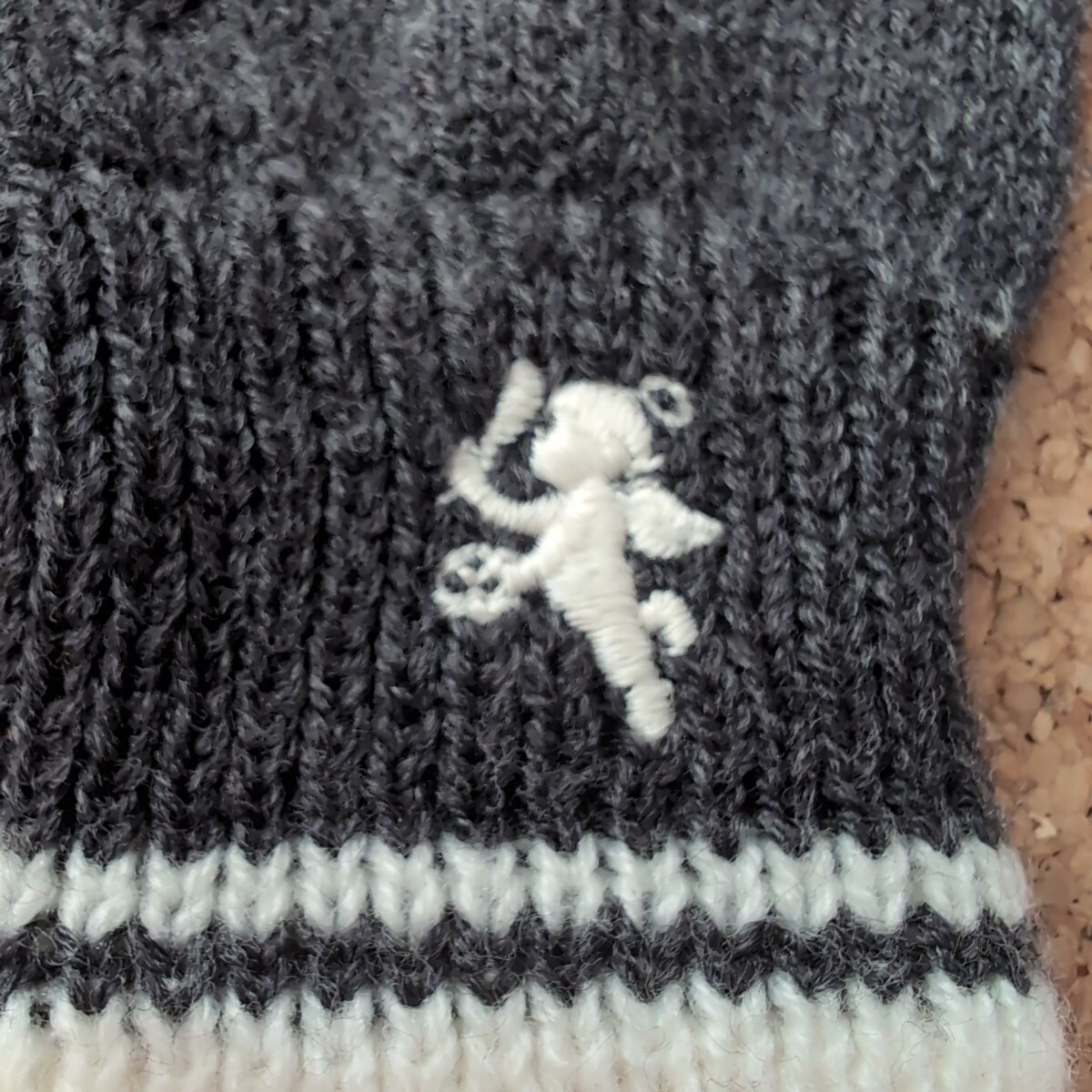 エンジェルの刺繍が施されたグレーのニット手袋、リブ編みのカフス付き。| 出价者 | 信用 | 价格 | 时间 |