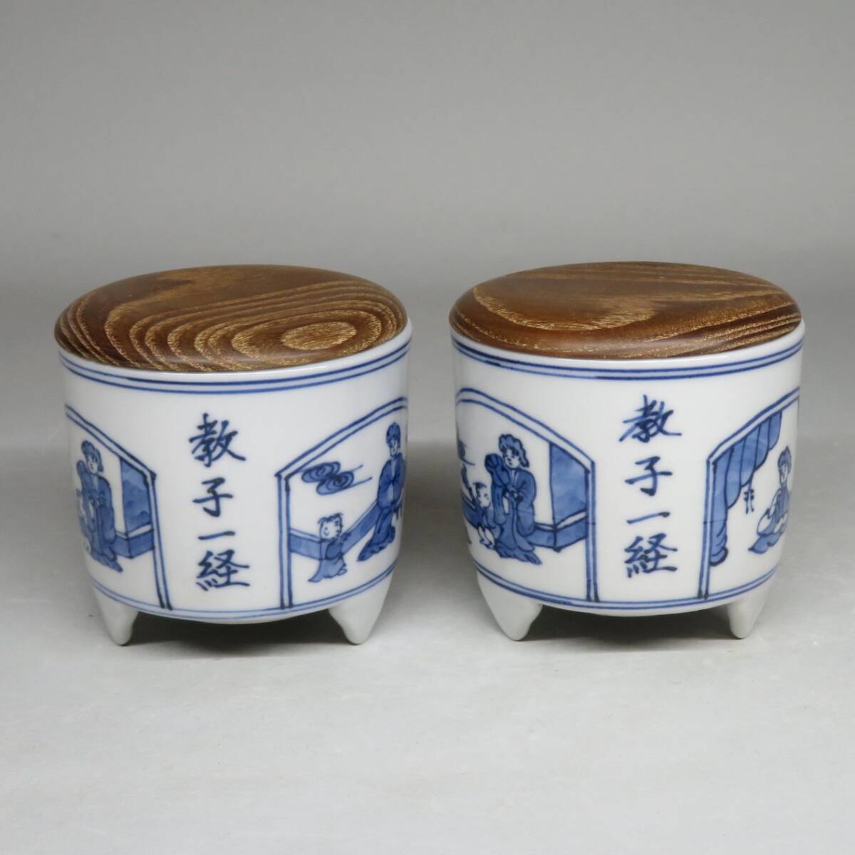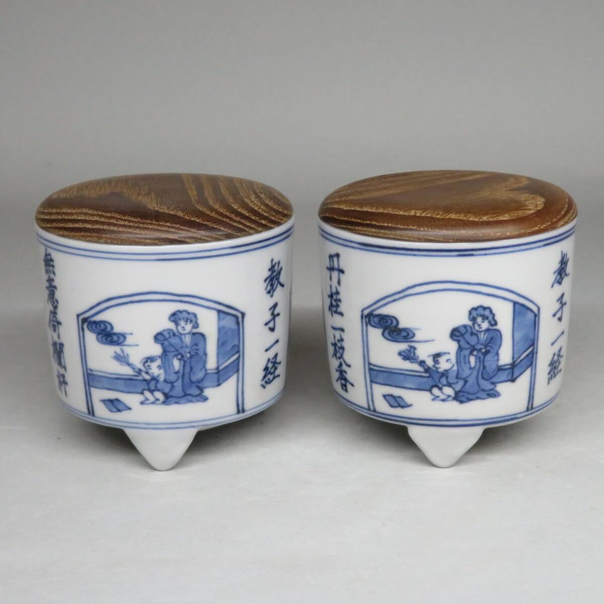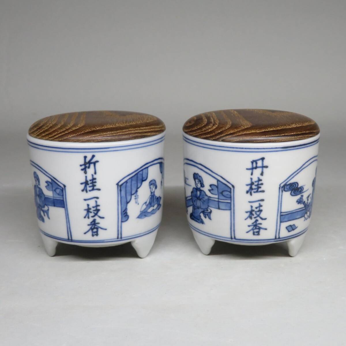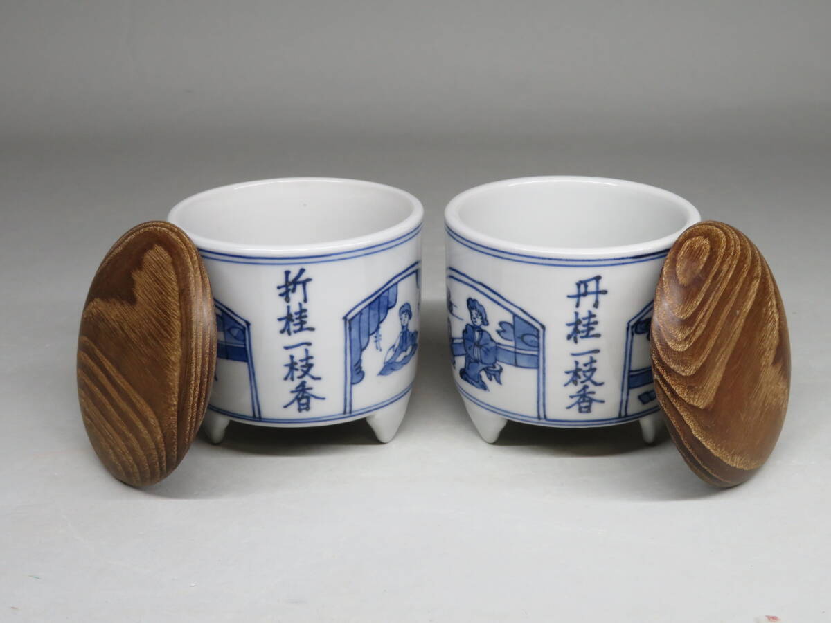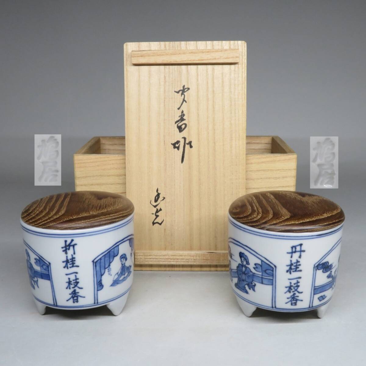 | 香道家の蔵出し 鳩居堂謹製◆【染付聞香炉】一対 松隠主 蜂谷家元宗由(幽光斎)書付 香道具◆ | |||||||