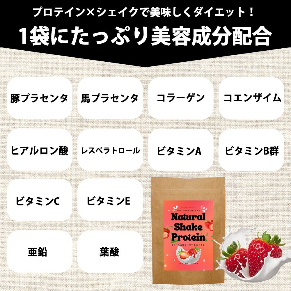 THE PROTEIN BAR プロテインシェイク 乳酸菌 & 酵素配合 ナチュラルシェイクプロテイン 200g 約15杯~20杯分 1杯あたり約37kcal プロテイン量約6g 計量スプーン付 美容成分配合 プラセンタ コラーゲン