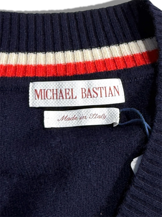 世界的な地位を築き上げているラグジュアリーブランド《MICHAEL BASTIAN -マイケルバスティアン-》 ”トムフォード”と並び、依然盛り上がりを見せるニューヨークファッションシーンで重要は役割を果たしており 多くのファンを世界各地で抱えるブランドとなっております。 そんな《MICHAEL BASTIAN -マイケルバスティアン-》の、NYの感性とイタリアの職人技が融合したVネックカシミアニットセーターです。 レッド&ホワイトのチルデンニットのスポーティな要素を取り入れつつ、ベースが深みのあるネイビーだから決して子供っぽくなりません。 見た目はアメカジライクですが、袖を通せばその違いに気づきます。 ふっくらとした凹凸のある編み地(ワッフル編み)は肌触りが良く、体に優しくフィット。 ただのカジュアルウェアで終わらせない、上質な素材感が「リッチな大人の休日」を演出♪ ニットやセーターにおいては男女を問わず絶大な支持を誇り、 イタリアを代表するカシミアニットブランド《ブルネロ・クチネリ》の工場で生産しており、 ふんわりと身体を包まれる着心地は、大人の男性であればお分かり頂ける“極上感”です♪ 素材の良さは袖を通すだけでわかって頂ける逸品。 使い勝手が良く、幅広いコーディネートでお楽しみ頂けるので、大人のワードローブとして愛着が湧くこと間違いナシ♪ 休日の何気ない時間を昇華し、大切な人とのデートではラグジュアリーにキマる、ただのカジュアルウェアで終わらせない、 上質な素材感が「リッチな大人の休日」を演出してくれるカシミアニットセーター。 もちろん新品未使用品です。安心してお求めください。 |