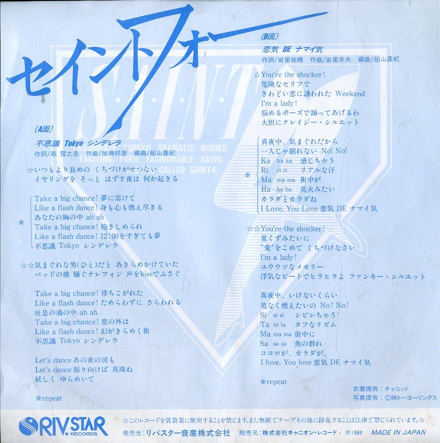 C00147000/EP/セイントフォー(鈴木幸恵・岩間沙織・浜田範子・板谷祐三子)「不思議Tokyoシンデレラ/恋気 DE ナマイ気」